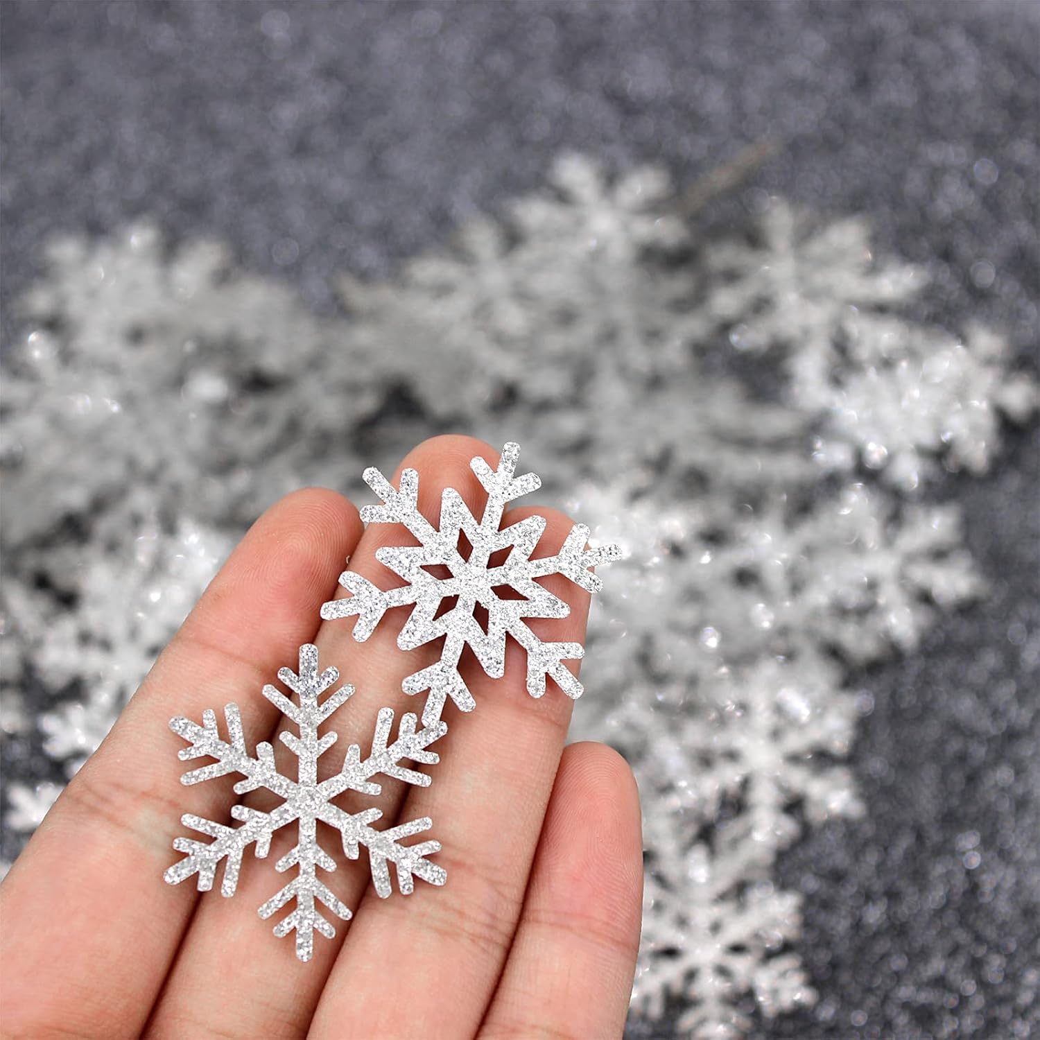- Premium quality and proper size.The small snowflakes for crafts are made from silver glitter paper card and well cut,size is 1.2inch,perfect for holiday crafts,recommend as table decorations or craft supply.