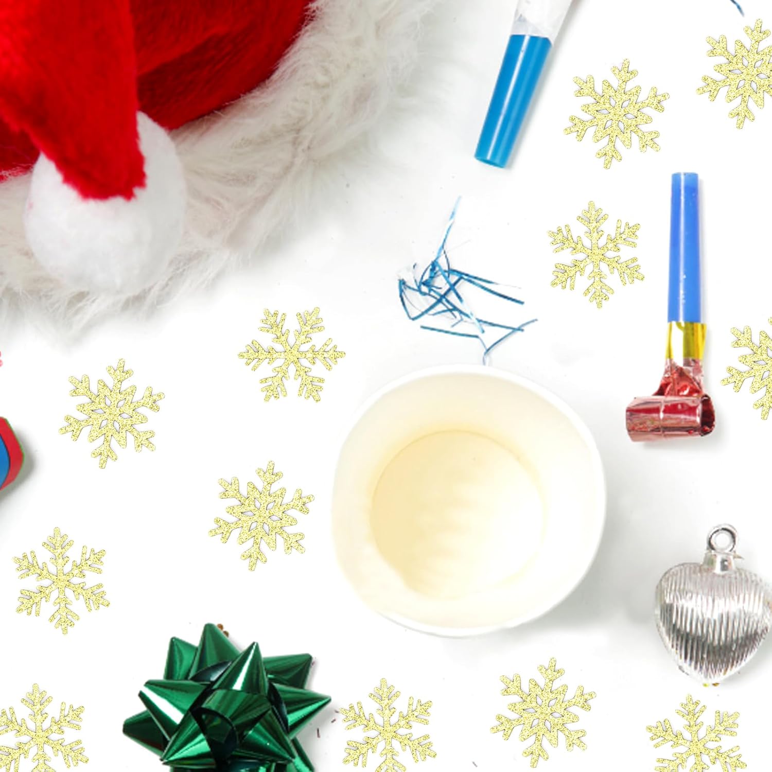 200PC Snowflake Party Decorations Gold Glitter Christmas Confetti Paper Snowflakes Table Confetti For Winter Holiday Birthday Baby Shower Party Decor