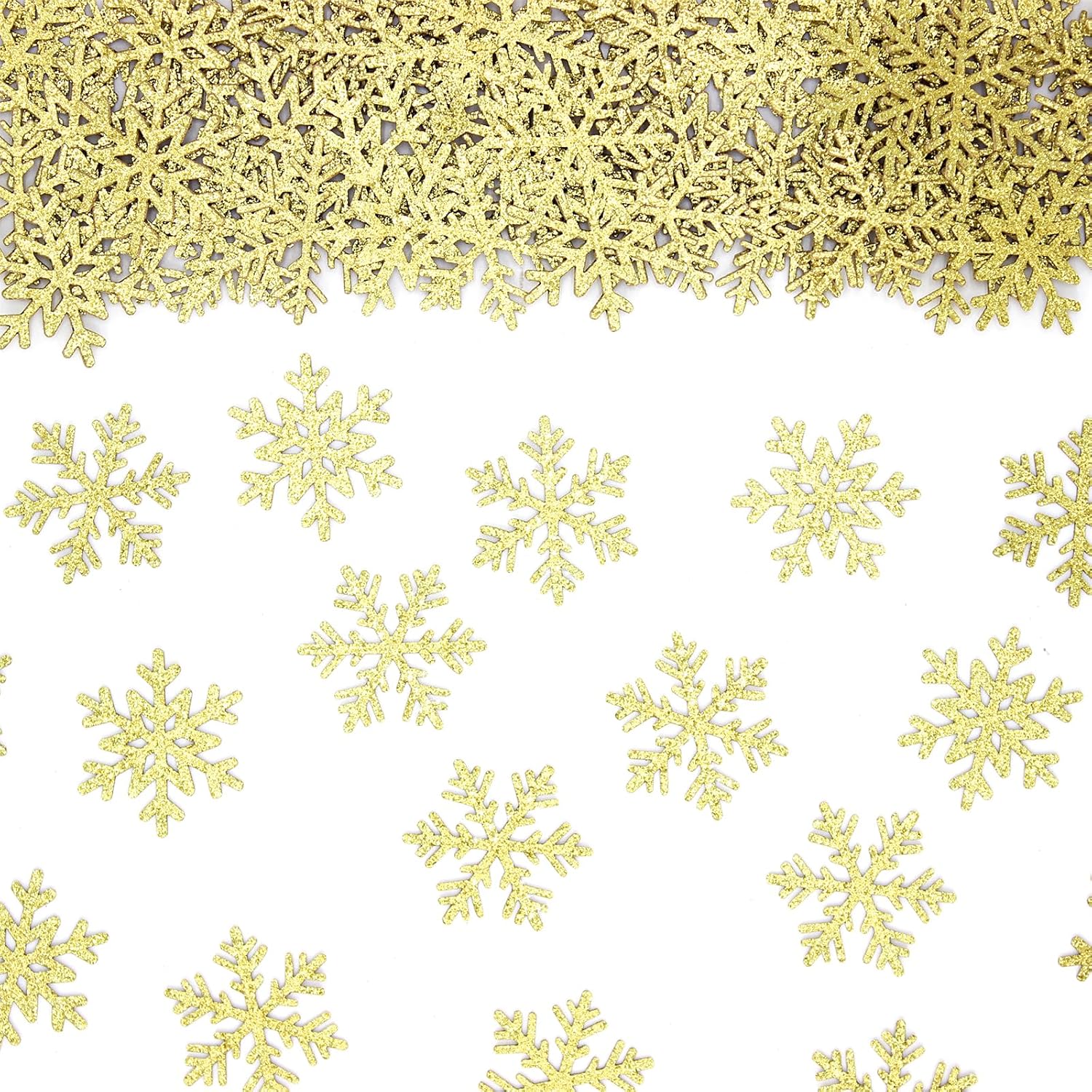 - Great addition to winter wonderland party:the gold glittery paper snowflakes confetti looks shimmering,great for winter baby shower,winter birthday party and winter themed wedding party decors.