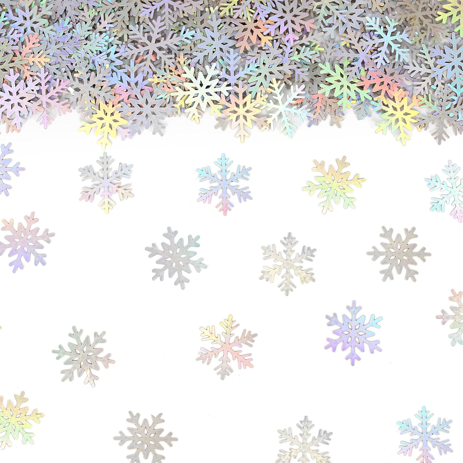 - Great addtion to your winter party:the shimmer tiny paper snowflakes confetti looks fantastic,appear to dreamlike atmosphere for the christmas new year holiday, baby shower,kids first birthday,bachelorette party,or wedding party decorations.