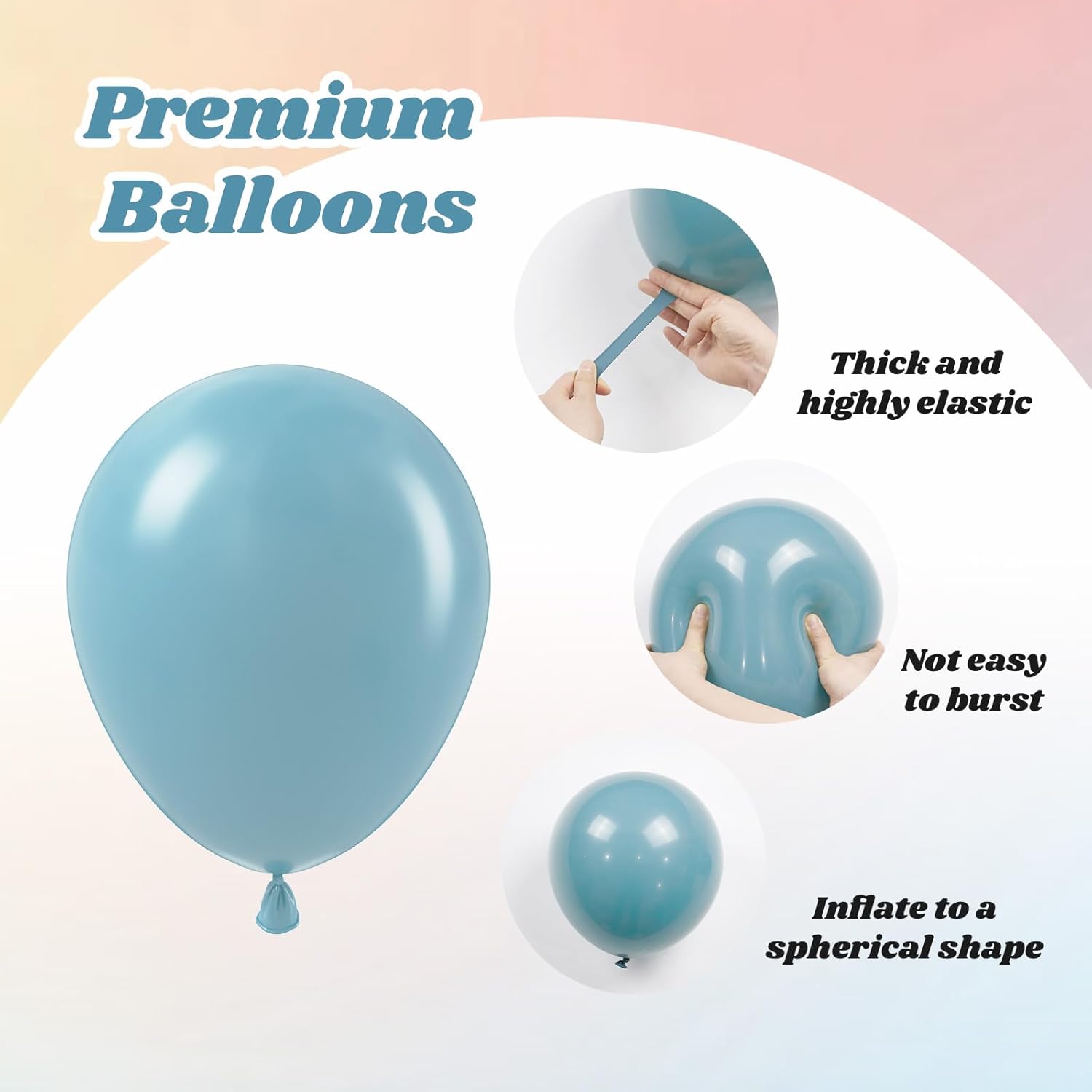 - Package Include: The pink and blue balloons include 12inch dusty pink balloonsx20, 12inch dusty blue balloonsx20, 12inch sand white balloonsx20, glue dotsx20, white ribbonx1