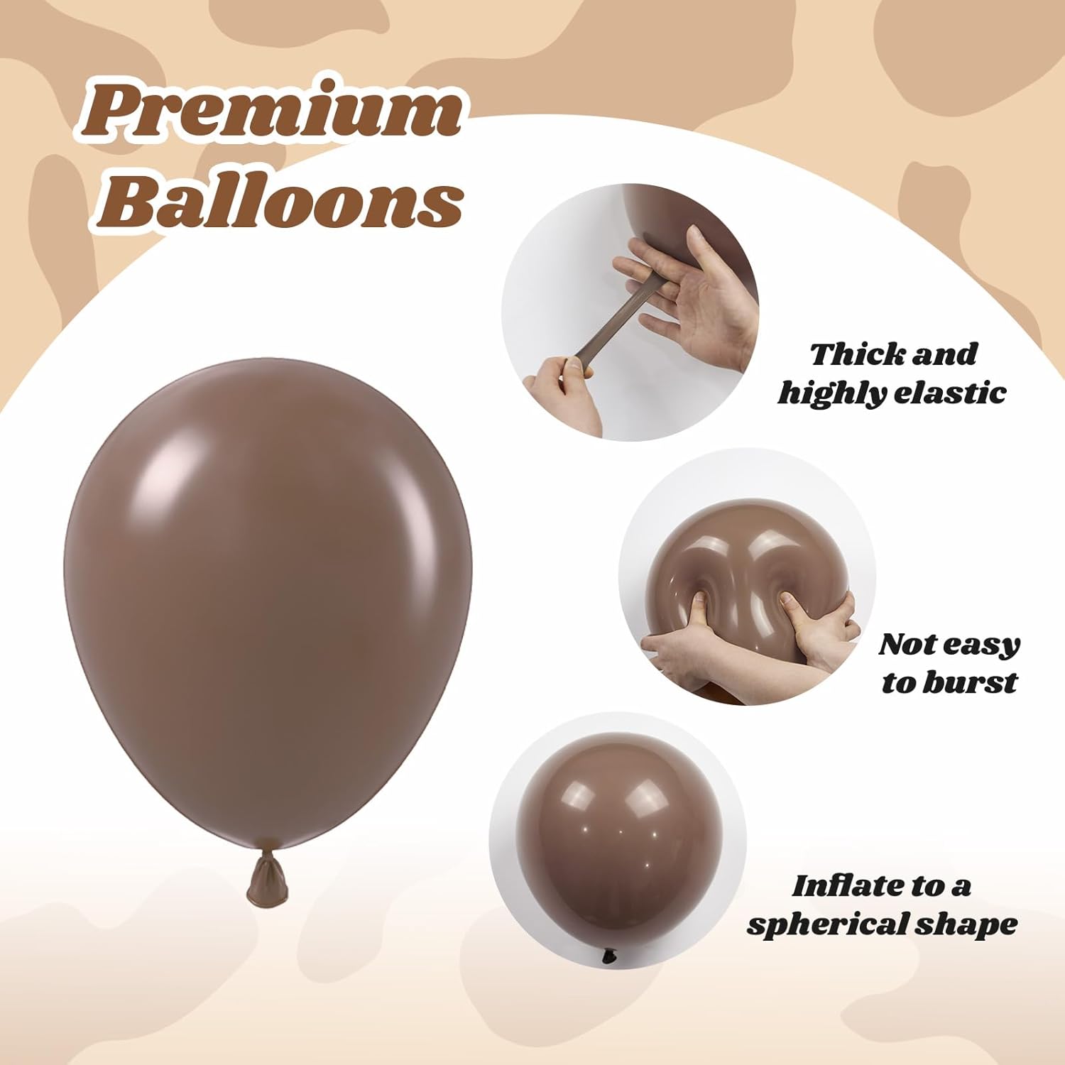 - Package Include: The cowboy balloons include 12inch coffee brown balloonsx10, 12inch light brown balloonsx10, 12inch slate blue balloonsx10, 12inch dusty blue balloonsx10, 12inch sand white balloonsx10, 12inch cow print balloonsx10, glue dotsx20, ribbonx1