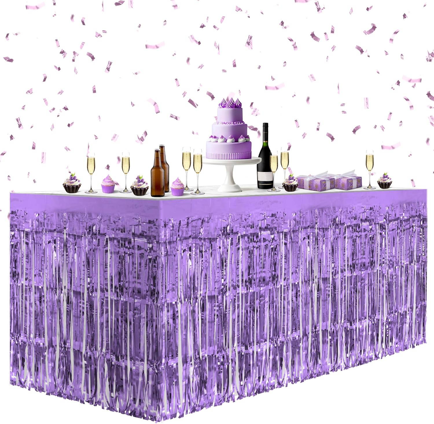 2 Pack Light Purple Table Skirts, 29x108" Metallic Foil Tinsel Fringe Table Skirts for Rectangle Tables Streamer Curtains Backdrop, Party Decorations for Birthdays Weddings Holidays