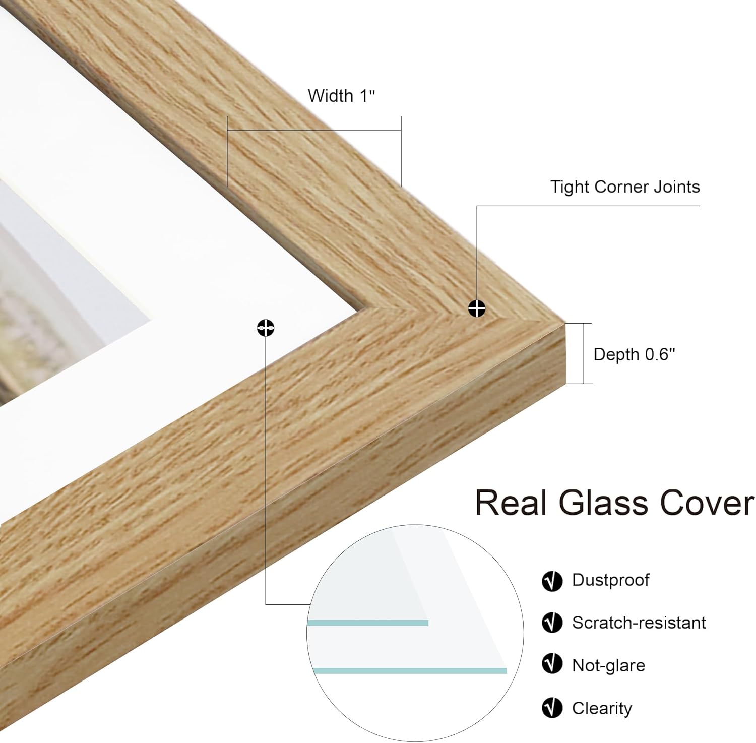 - Rustic Wood and Glass - The 8x10 picture frames made of durable MDF wood compared to other flimsy PS or plastics frames. we use tempered glass is an exceptional alternative to plexiglass, eliminating the inconveniences of bending, reflection, fragility, and susceptibility to scratches. Its edges are meticulously polished, ensuring your safety and shielding you from the harm caused by sharp glass edges.