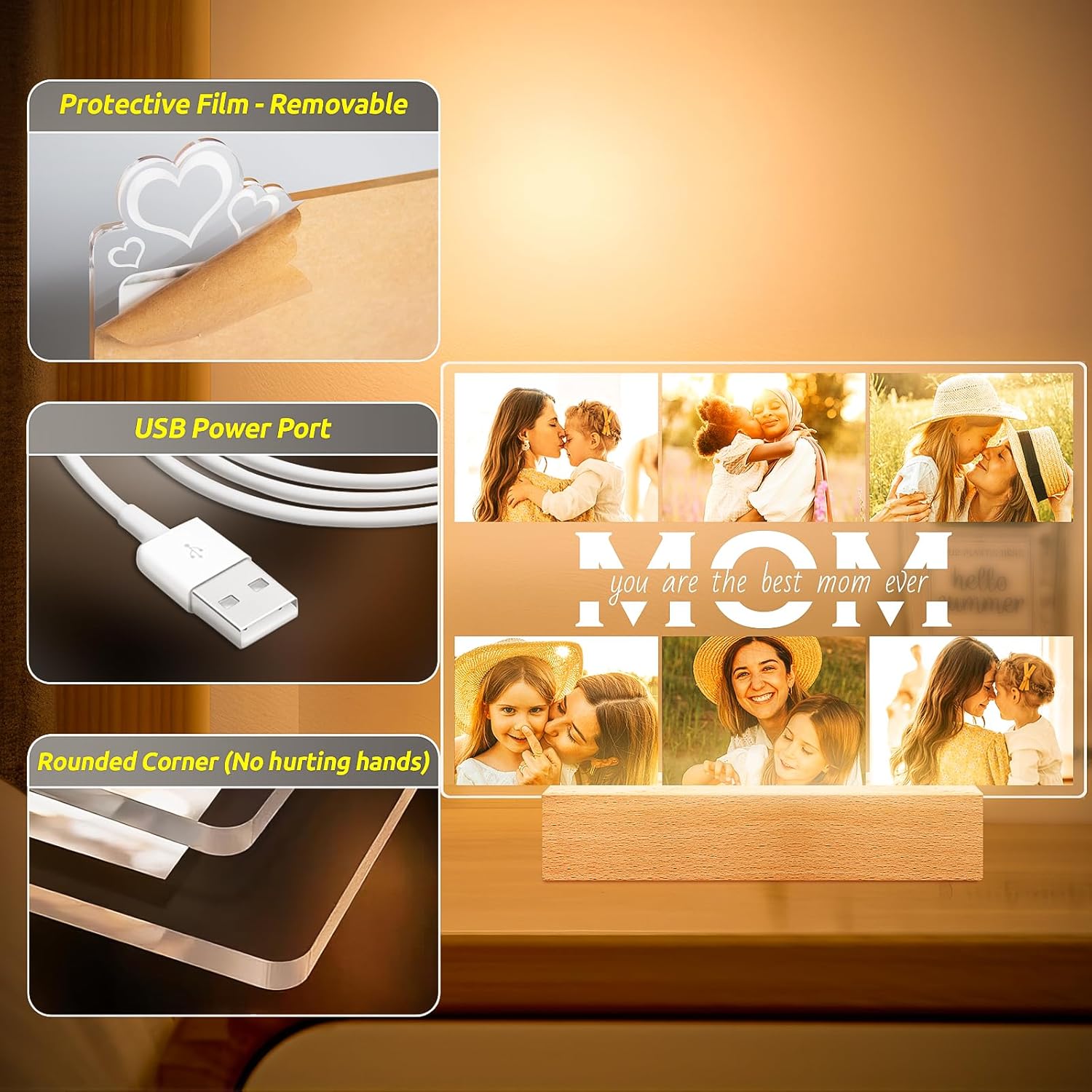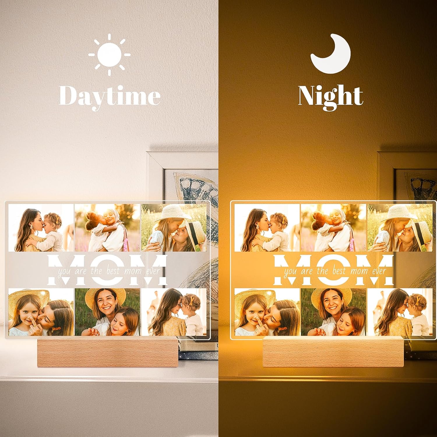 Personalized Gifts for Mom from Daughter Son, Custom Picture Frames with Photos, Customized Photo Frame with Night Light, Personalized Birthday Gifts for Mom Baby Kids Family