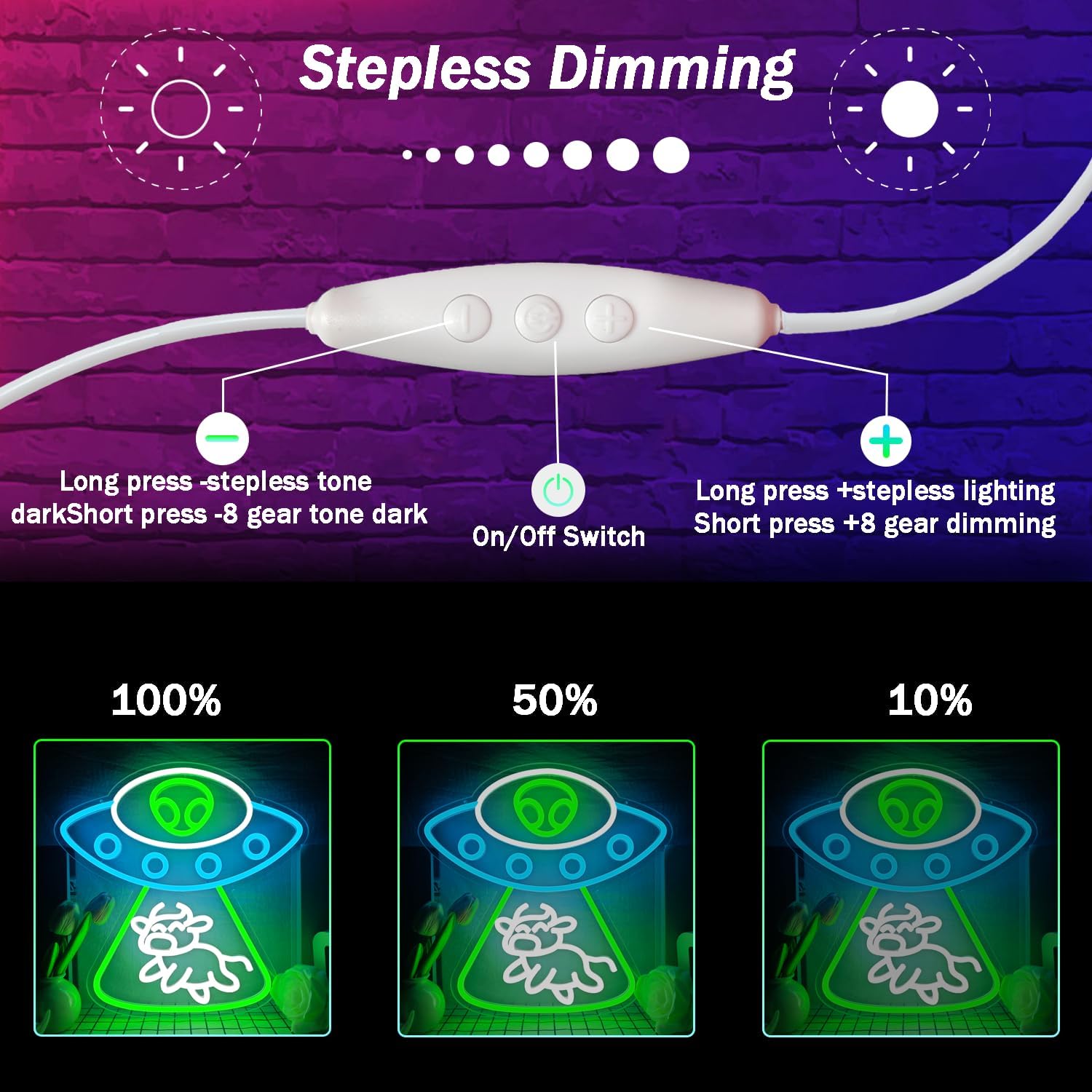 - 【USB & Dimmable】The alien cow neon sign's dimmer switch provides 5 levels of brightness adjustment to meet different lighting needs. The alien LED sign not only lights up a fantastic atmosphere for your party, but also adds vitality to the bar, attracting guests with its eye-catching colorful glow, becoming a stylish highlight of the bar decoration.