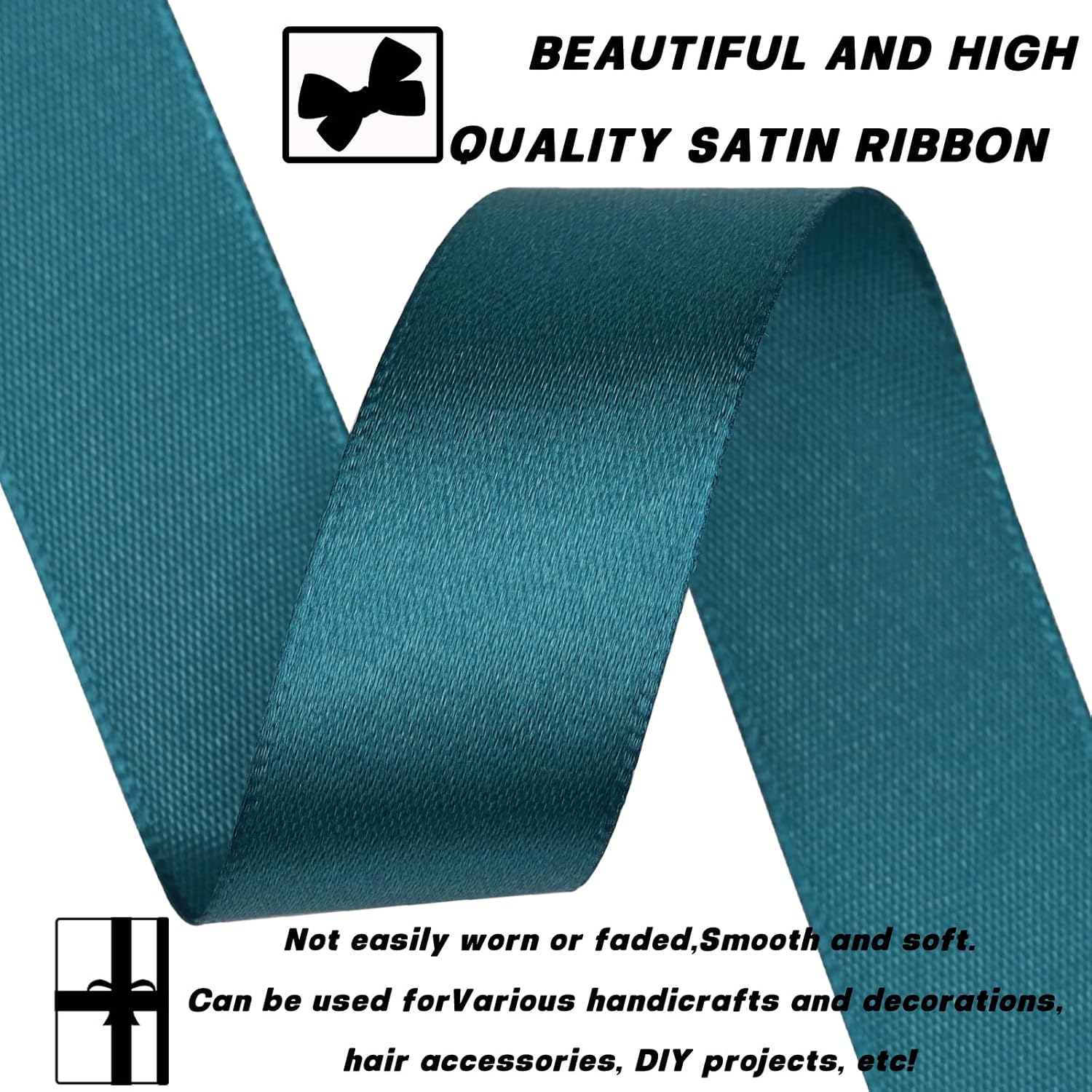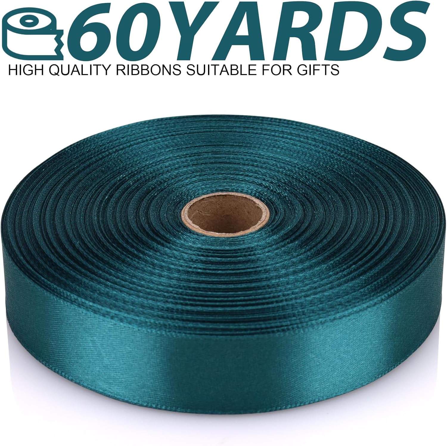 Greenish Blue Ribbon 7/8 Inch 60 Yards Satin Craft Ribbon-Single Face Polyester Ribbon for Handmade Roses,Gift Wrapping,Timeless Flower,Bouquets,Wedding and Party Decoration