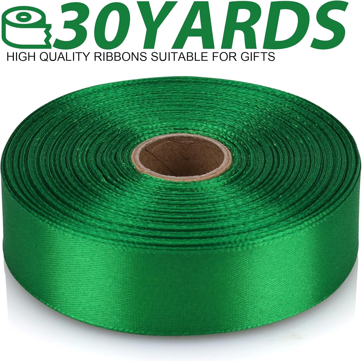 Green Polyester Ribbon - 7/8 Inch, 30 Yards - Classic, Solid, Versatile for Multiple Occasions