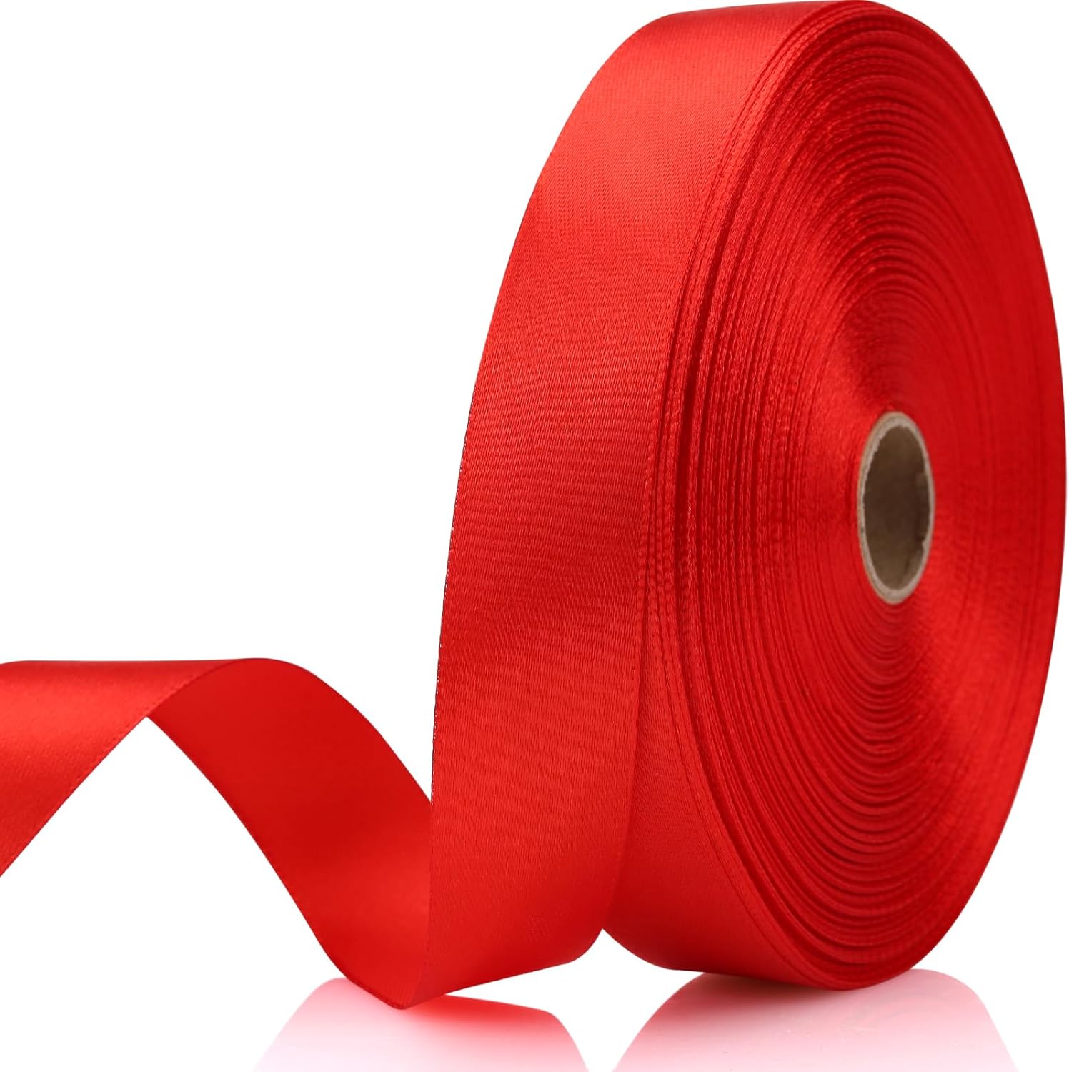 Red Ribbon 7/8 Inch 60 Yards Satin Craft Ribbon-Single Face Polyester Ribbon for Handmade Roses,Gift Wrapping,Timeless Flower,Bouquets,Wedding and Party Decoration