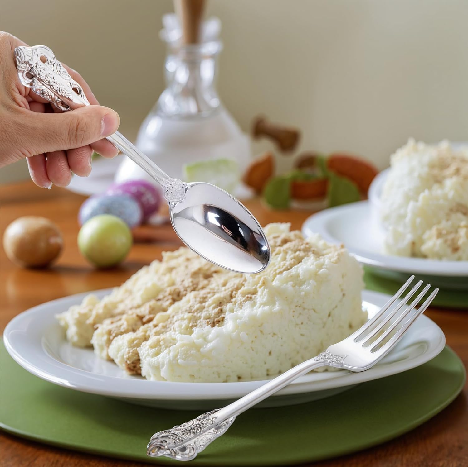 - PERFECT SIZE AND ATTRACTIVE: These silver plastic flatware are perfect size and weight feel more like normal flatware, provides a comfortable fit in your hand, easy to use with most types of food.