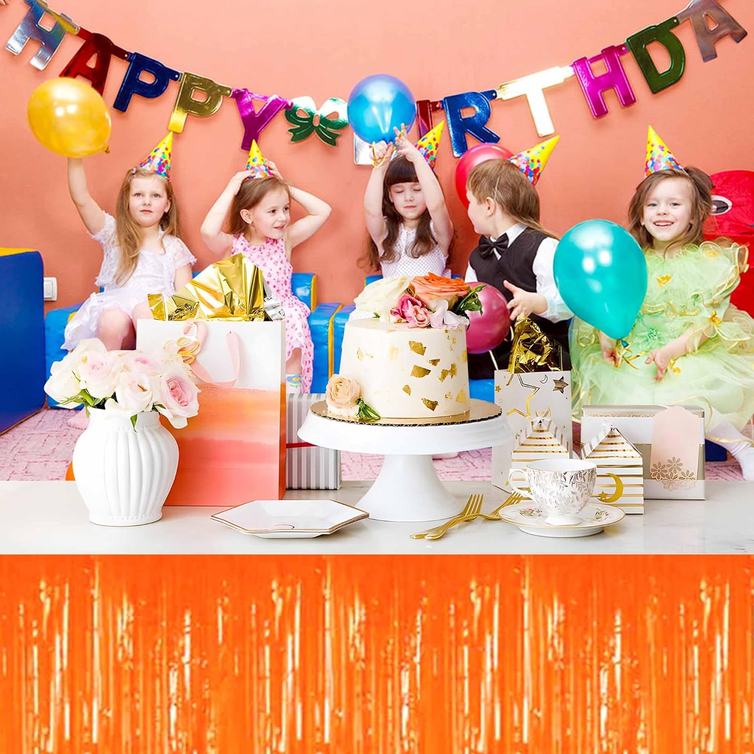 3 Pack 29 x108 Inch Macaron Orange Foil Fringe Table Skirts Metallic Banner for Tinsel Streamer Garland Backdrop for Parade Floats Mother's Day, Graduate, Birthday, Wedding Party Decoration