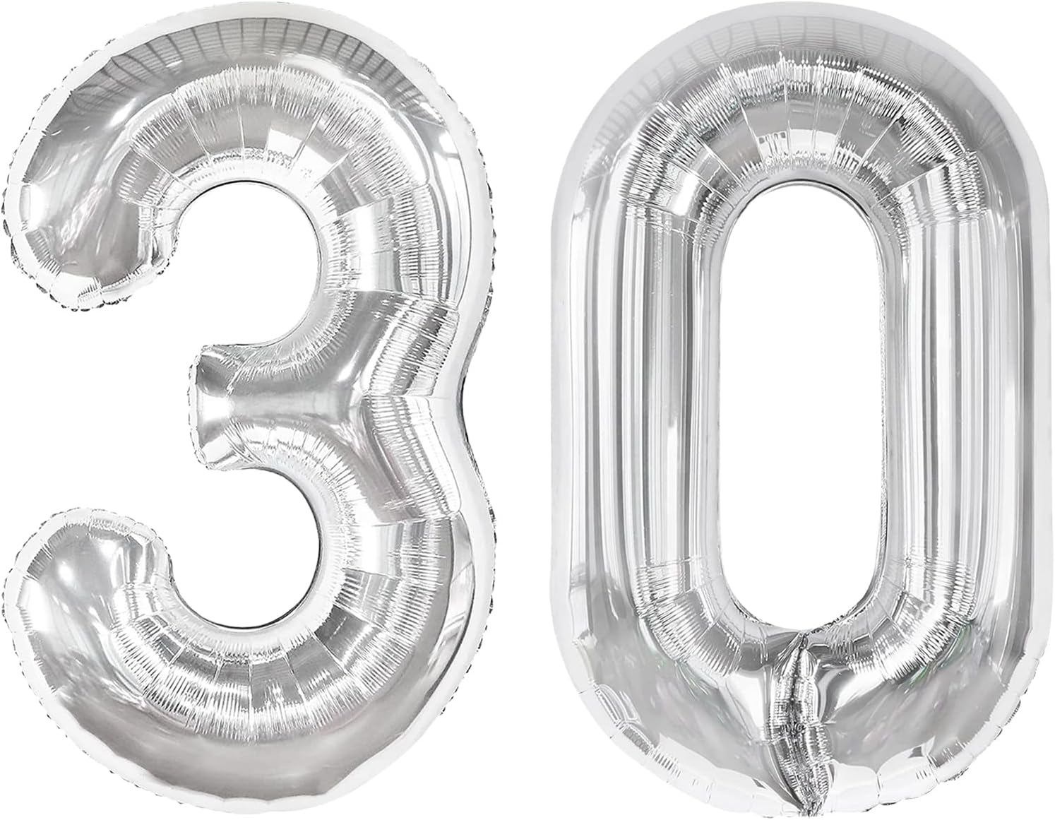 Silver 40 Inch 30 Number Balloons, 30 Decorations for 30 Birthday, Foil Giant Birthday Graduations Anniversary Party Balloons