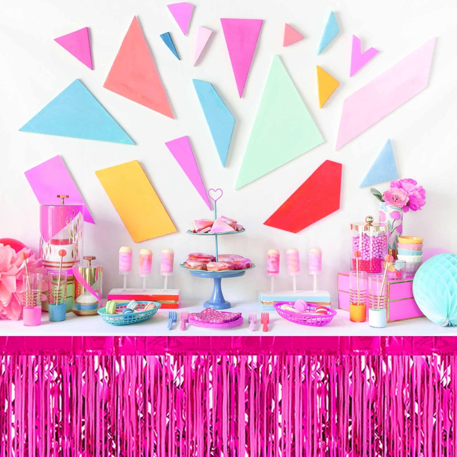 3 Pack 29 x108 Inch Fuchsia Foil Fringe Table Skirts Metallic Banner for Tinsel Streamer Garland Backdrop for Parade Floats Mother's Day, Graduate, Birthday, Wedding Party Decoration