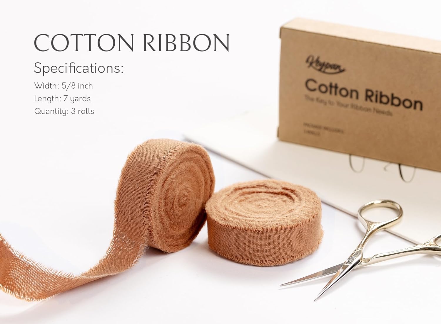 - WHAT YOU GET: This set of ribbons includes 3 rolls of 5/8 inch wide cotton ribbon, each roll being 7 yards long. In total, you get 21 yards of ribbon, enough to meet your needs