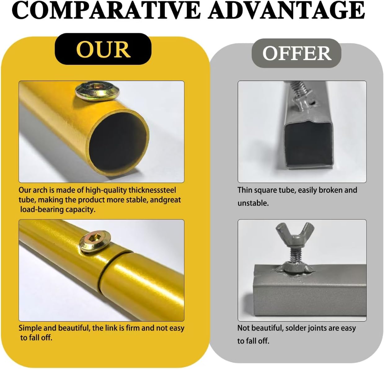 - ใ High quality, easy to assemble ใ: The arch is of superior quality and made of sturdy, lightweight, and rust resistant metal steel pipes. It is golden in color and very sturdy. This open background wall bracket has higher load-bearing capacity and can be easily assembled and disassembled with screws and buckles in a few minutes, making it easy to carry and place anywhere. Very suitable for wedding arches, flower arches, and other celebratory events with and flower backgrounds
