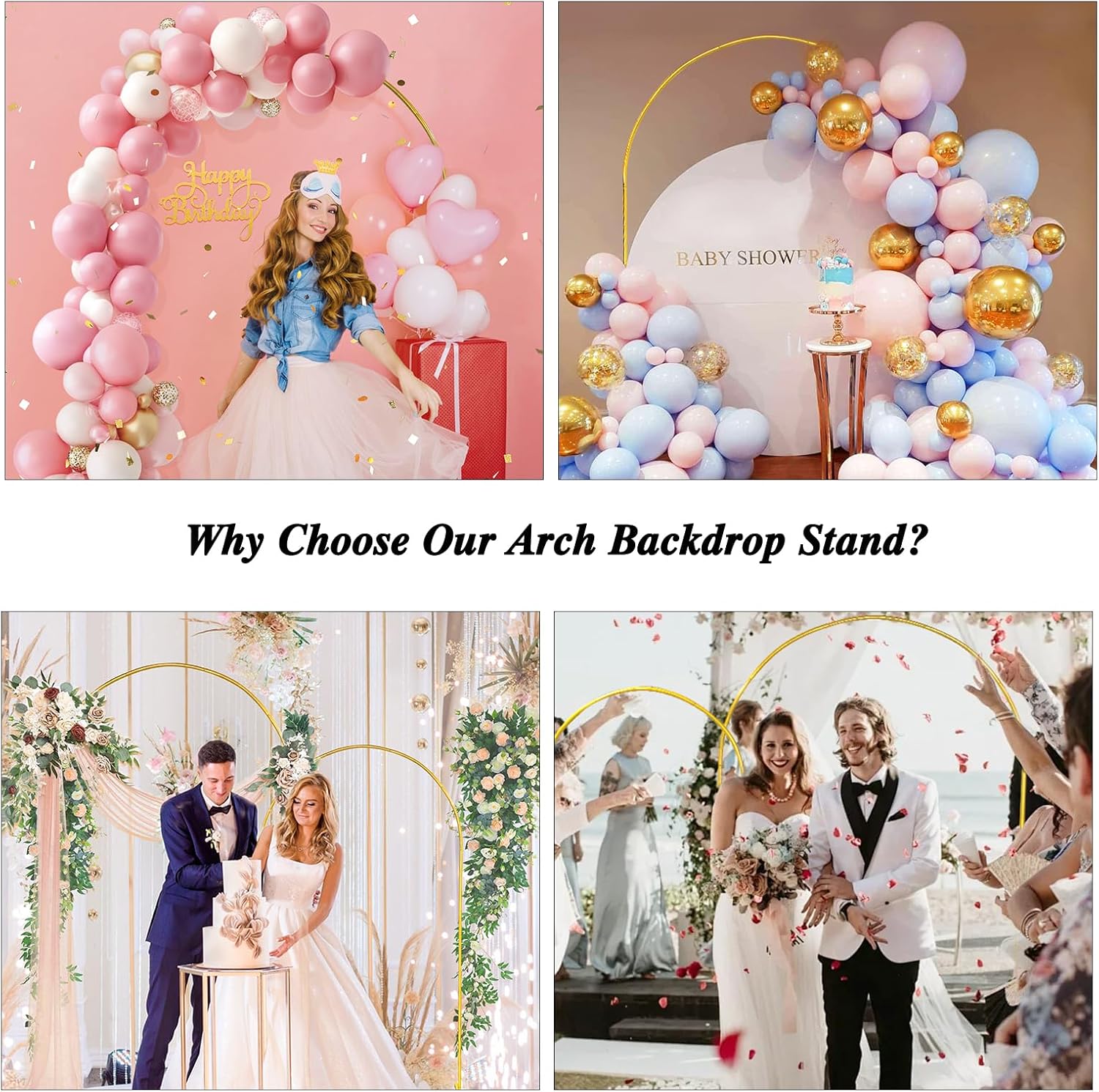 - ใ Wide Application ใ๏ผ The metal arch background frame is suitable for weddings, bridal showers, photo booth backgrounds, birthday parties, gardens, school opening ceremonies, company celebrations, graduation party decorations, Christmas decorations, New Year decorations, and photography