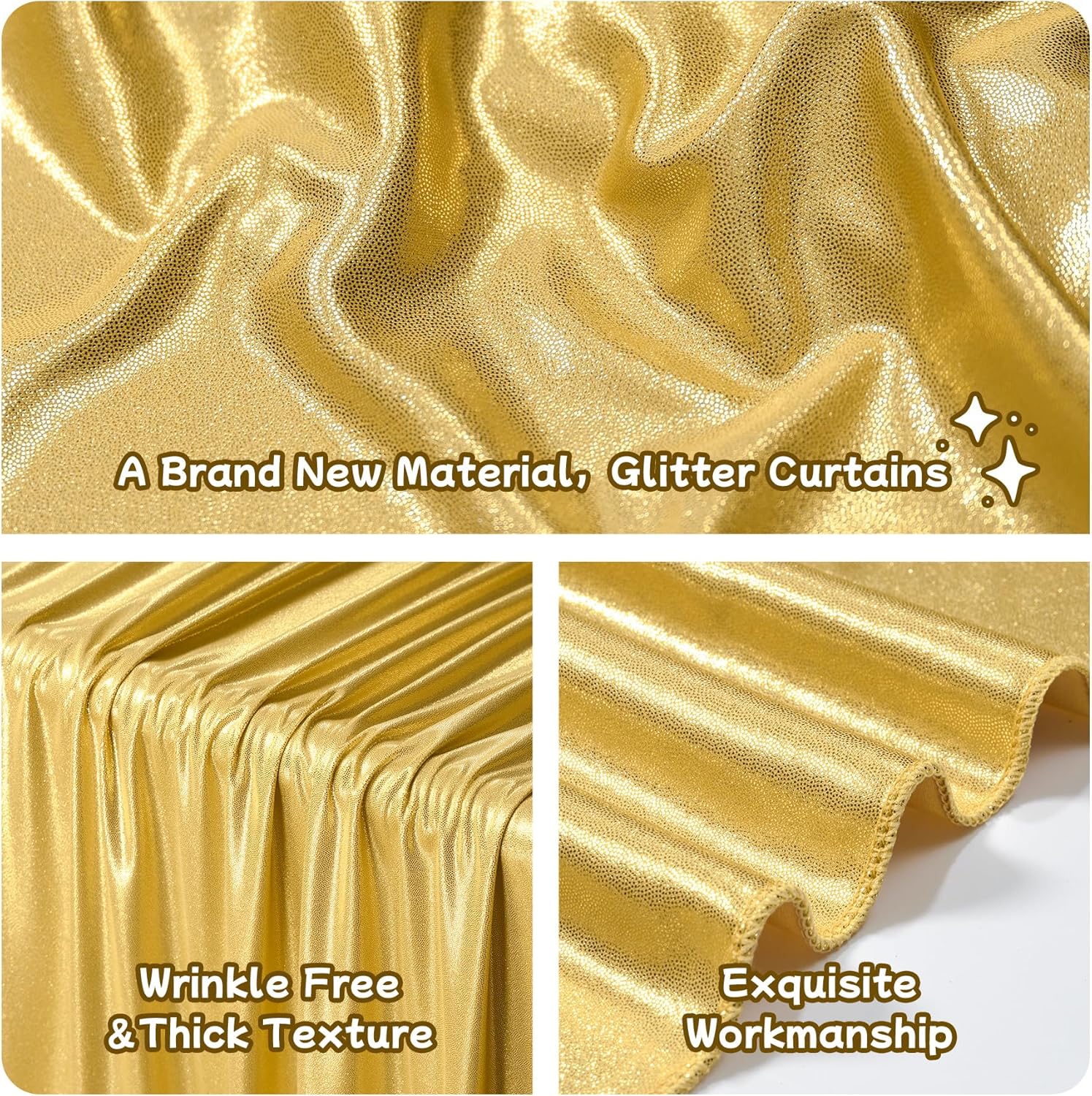 - Wrinkle-Free: Our 10ft gold sequin glitter party background curtain panels are made of wrinkle-free material, which could be used without ironing. Let you make unforgettable memories for your family or your friends.