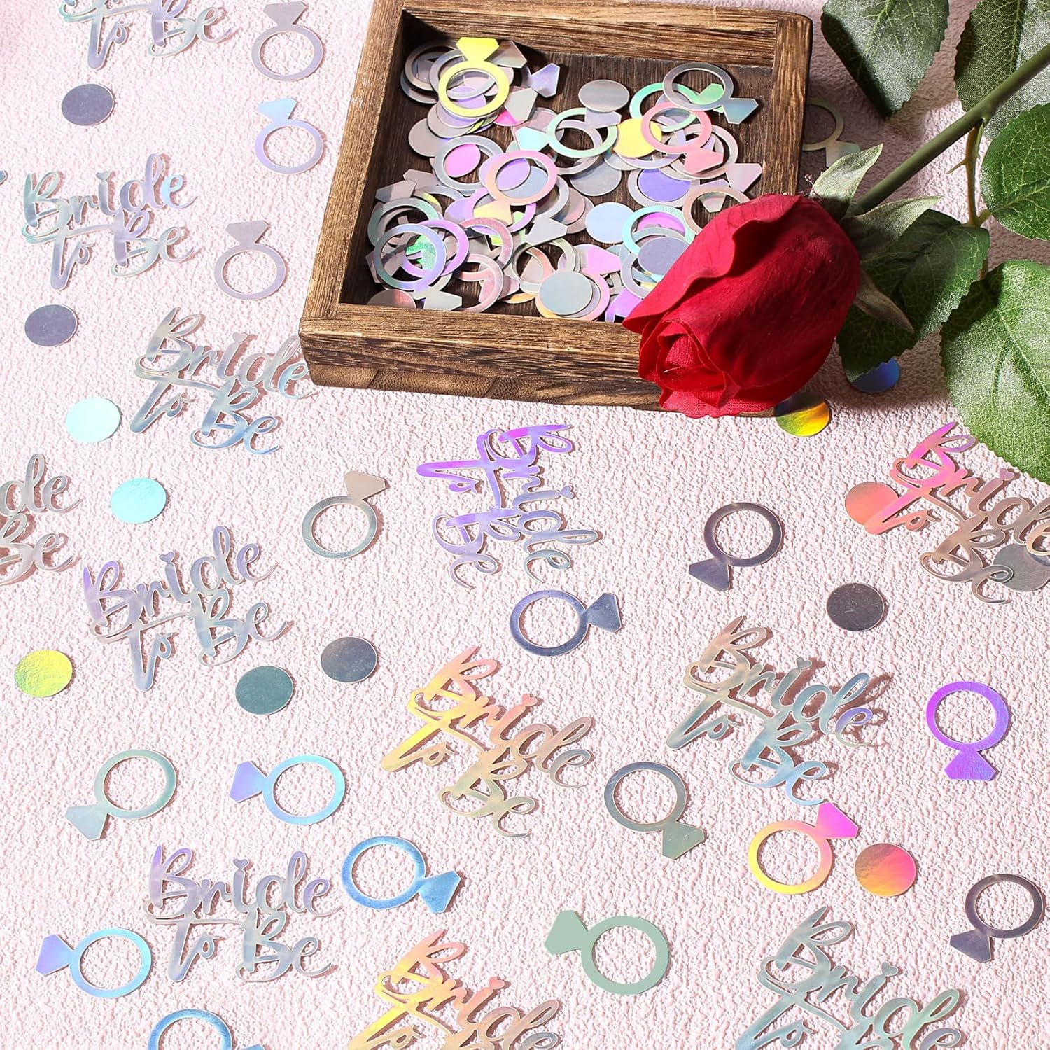 - Great bridal shower table decoration.The ring/bride to be wedding table confetti is shiny,a perfect addition to your bachelorette party ,engagement party,bridal shower,hen night party,valentines’ day surprise, or proposal party decorations supplies.
