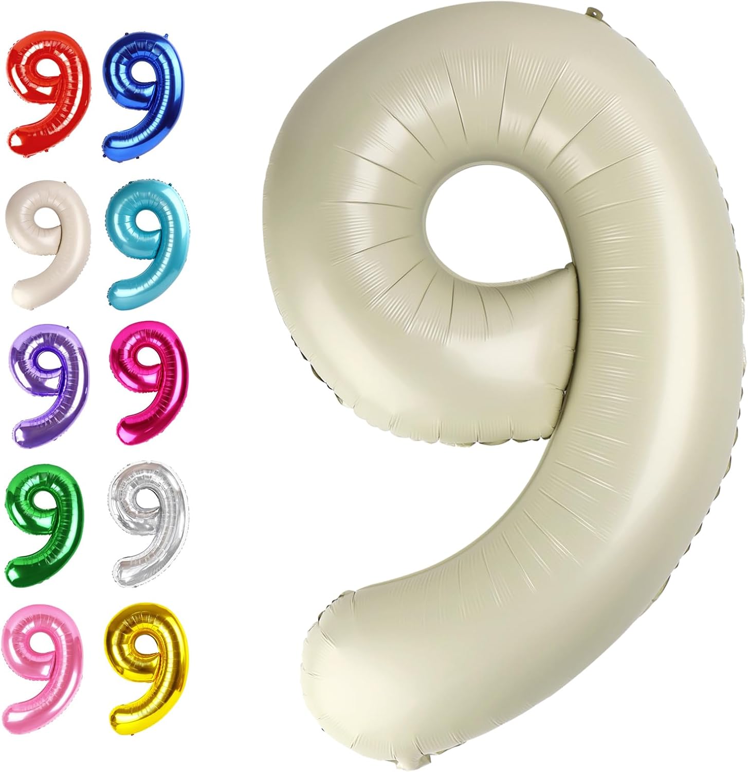 - 3.Versatile 9 Balloon Numbers: Are you still having trouble finding the right birthday ballons for your birthday decorations? Number balloons 40 inch will be the perfect ornament for any theme birthday party, anniversary, wedding, baby shower, graduation, Christmas Halloween, class activities and other special days. For children adults. Cream white birthday decoration is a beautiful birthday supplies for men and shooting background. You and guests will enjoy a relaxing party time together!