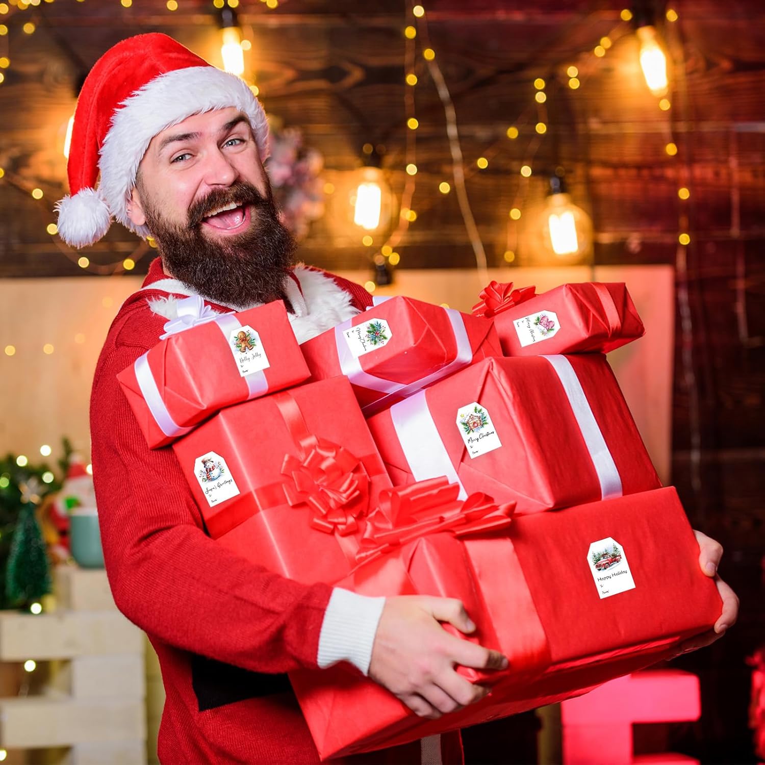 - 【Unique Christmas Design】There are various interesting patterns and words on Christmas present tags, which are very popular among adults and children. A warm gift combined with cute Christmas gift stickers is definitely a good idea. Make your gifts more interesting and attractive.