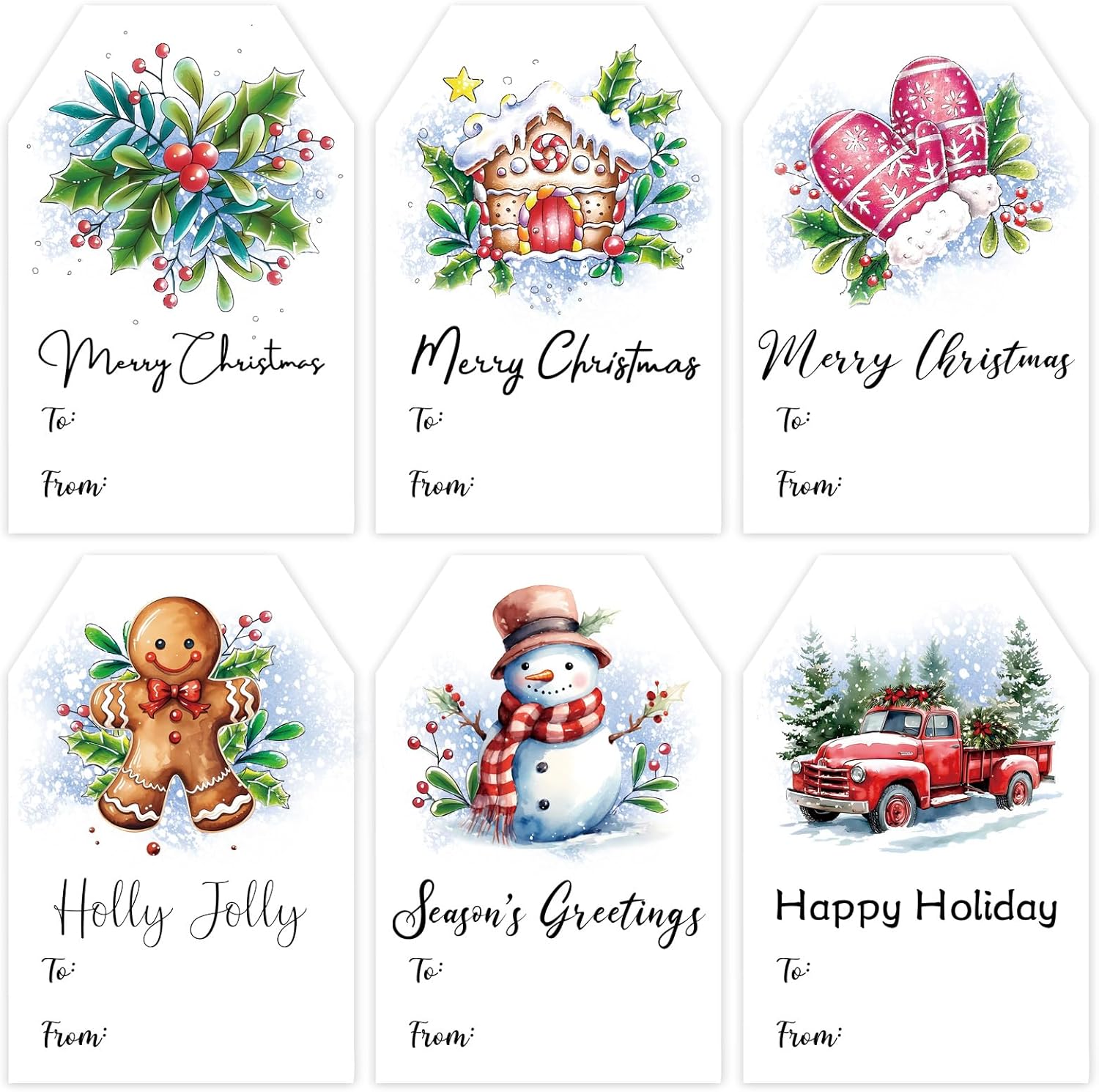 - 【Package Includes】Each set contains 6 sheets (96 pieces total) of Christmas name tags stickers in 6 different designs. Sufficient quantity and various styles. Each gift tag labels measures 2 x 3 inches, with plenty of space to write the names of the recipient and gift giver.