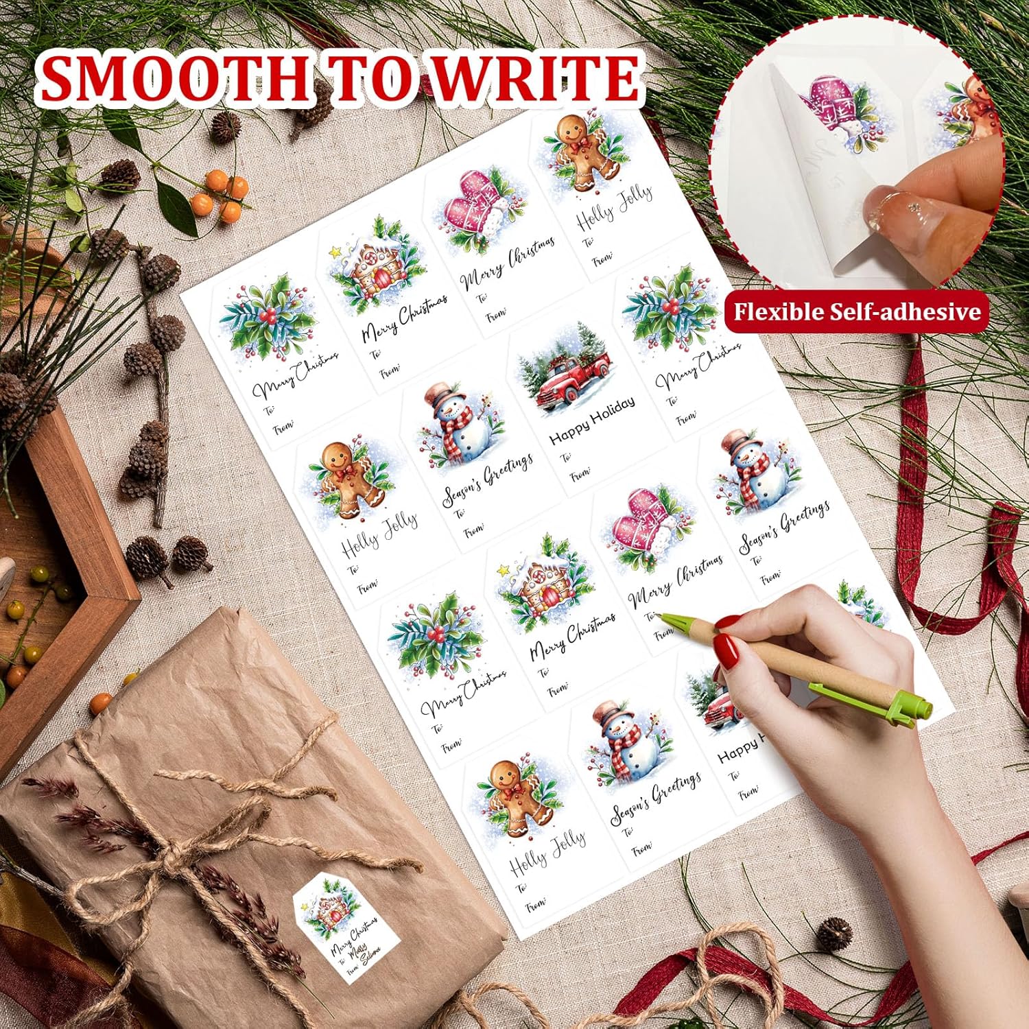 - 【Premium Coated Paper】Self-adhesive gift tag stickers are made of high-quality coated paper material with great look and feel. Sturdy, eco-friendly and odorless, writing smoothly and not easy to break. You can use a pen, pencil, or marker to write on these holiday labels.