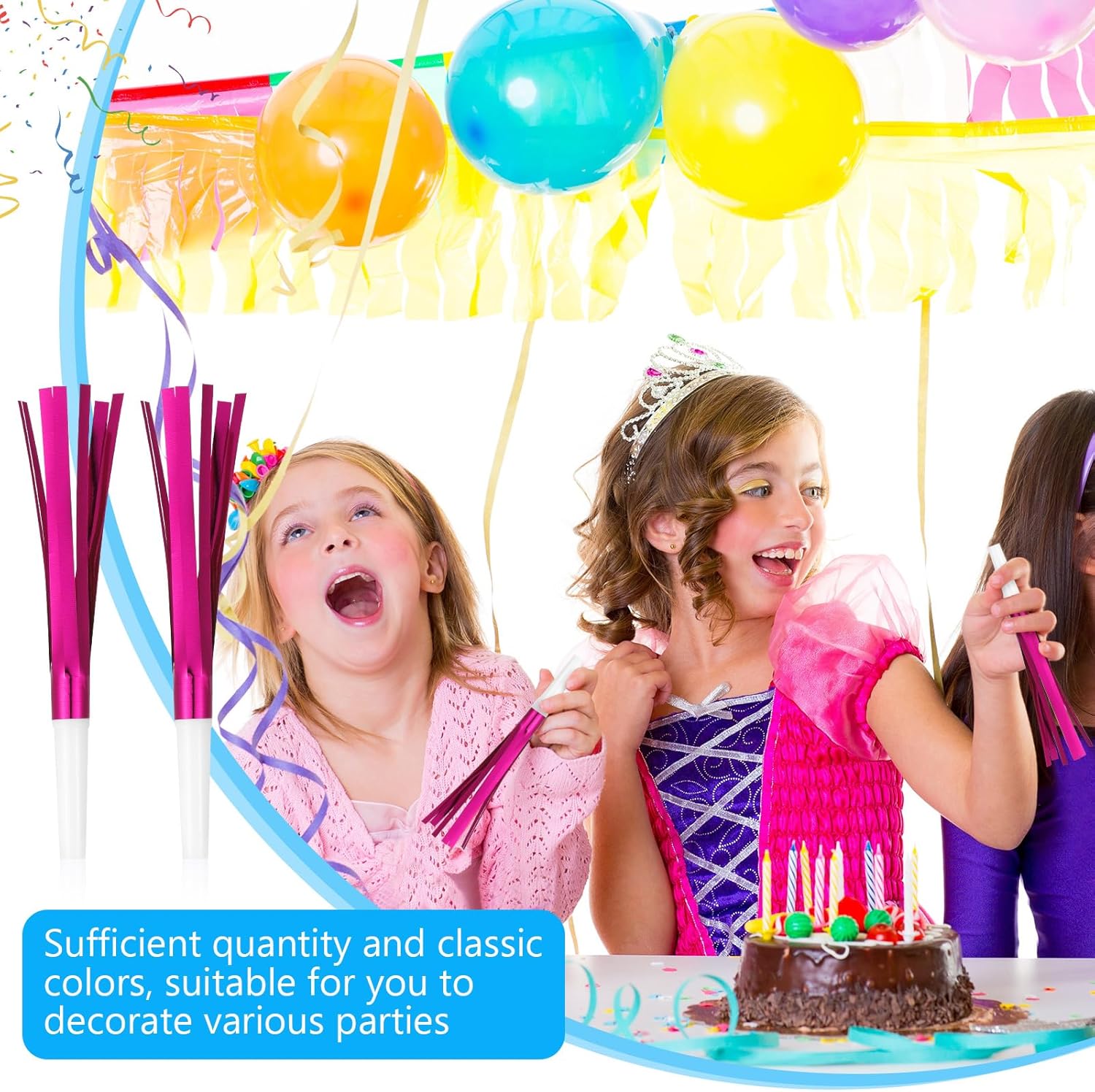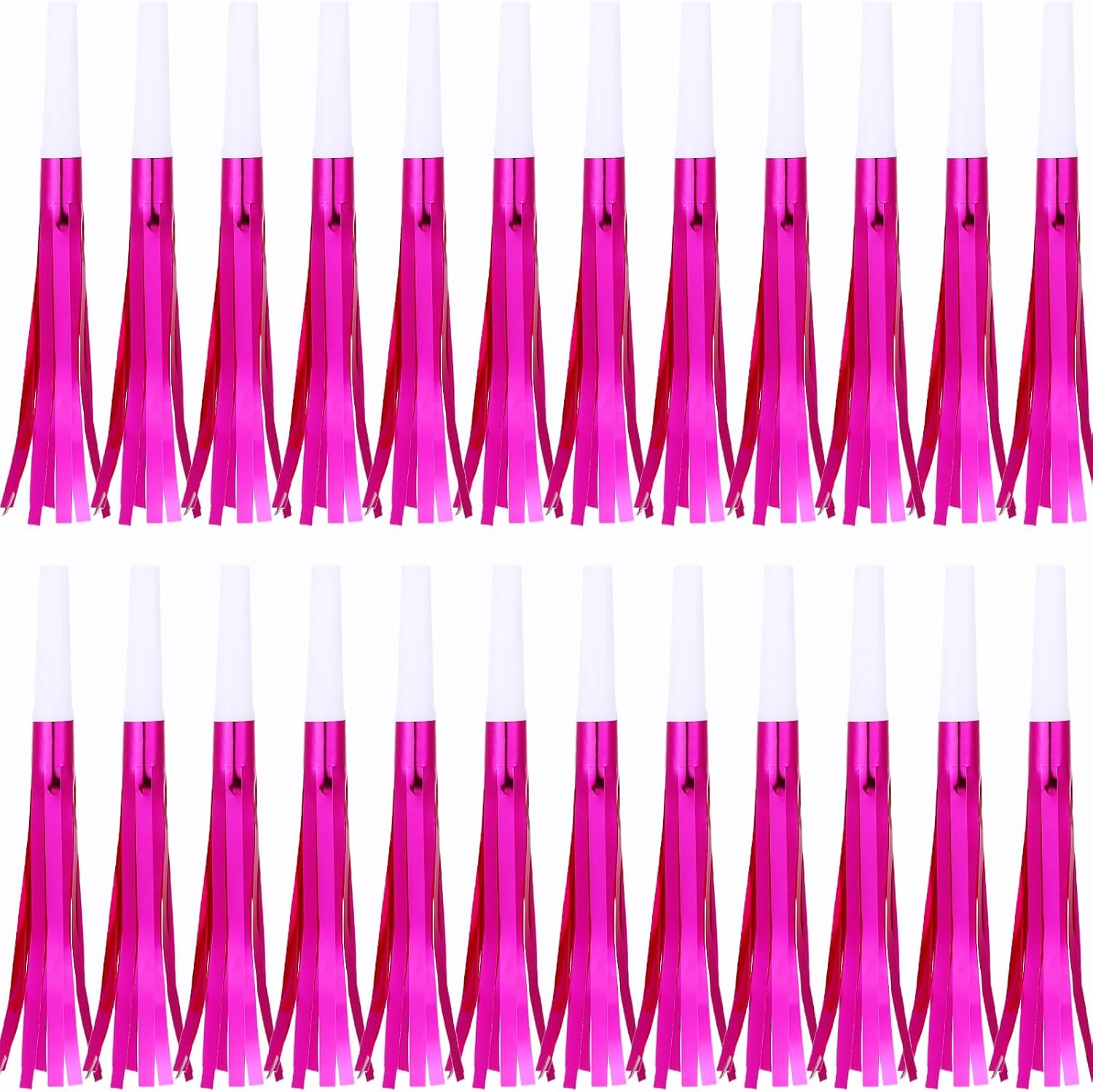 Metallic Fringed Noise Makers, for Noise Makers Party Favors, New Year Party, Baby Shower, Kids Birthday, 24 Pcs, Rose Red