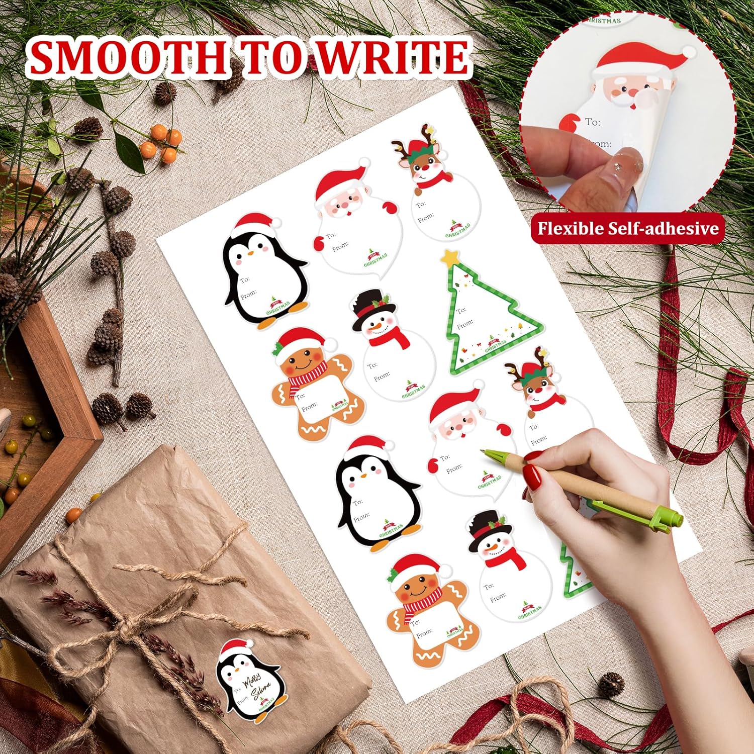- 【Premium Coated Paper】Self-adhesive gift tag stickers are made of high-quality coated paper material with great look and feel. Sturdy, eco-friendly and odorless, writing smoothly and not easy to break. You can use a pen, pencil, or marker to write on these holiday labels.