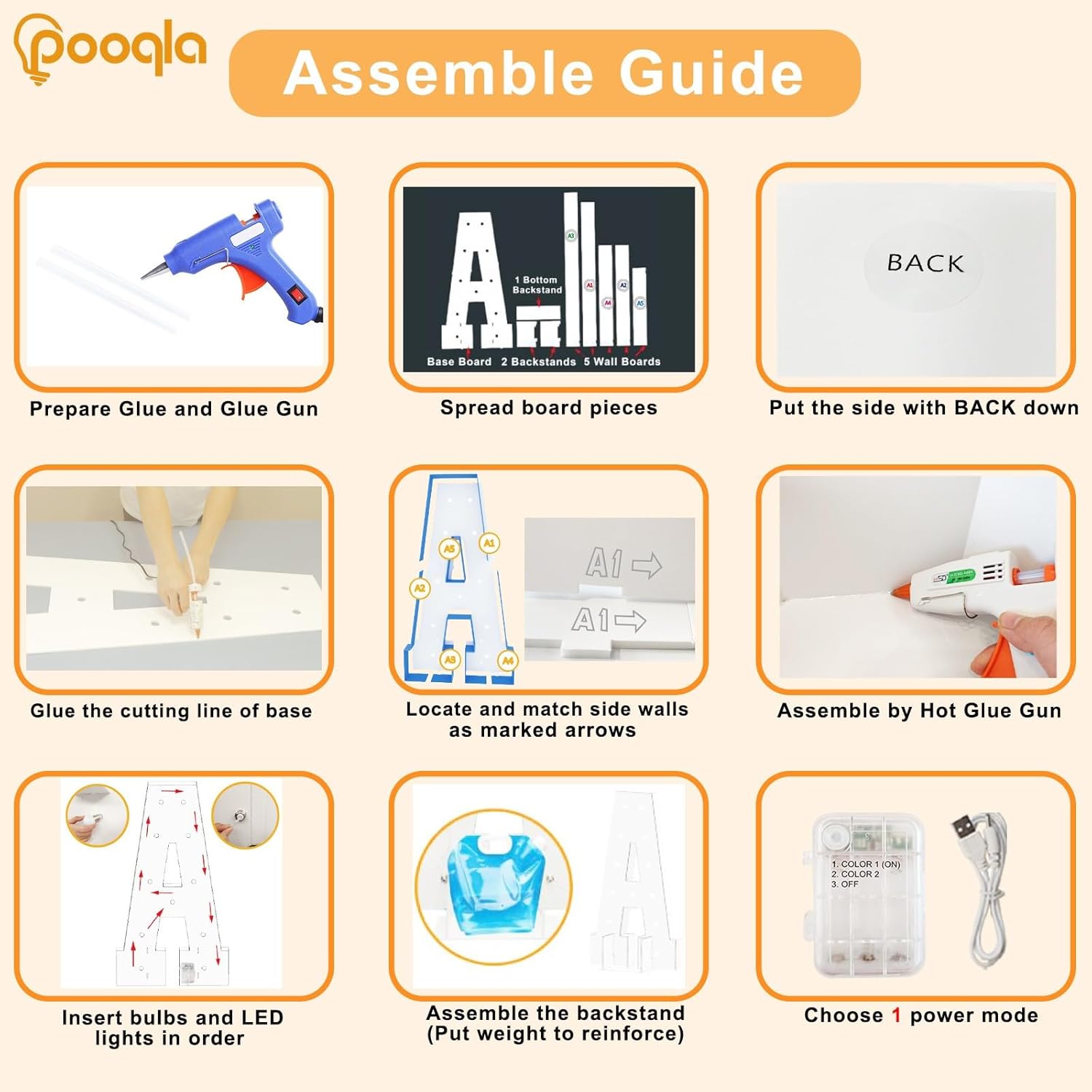 - Easy to Assemble: 1) Glue the base board, match the base and wall boards according to marked number and arrow. 2) Glue the base and wall boards together. 3) Screw the bulbs, connect LED lights and power on. Note: Glue gun, glue not included