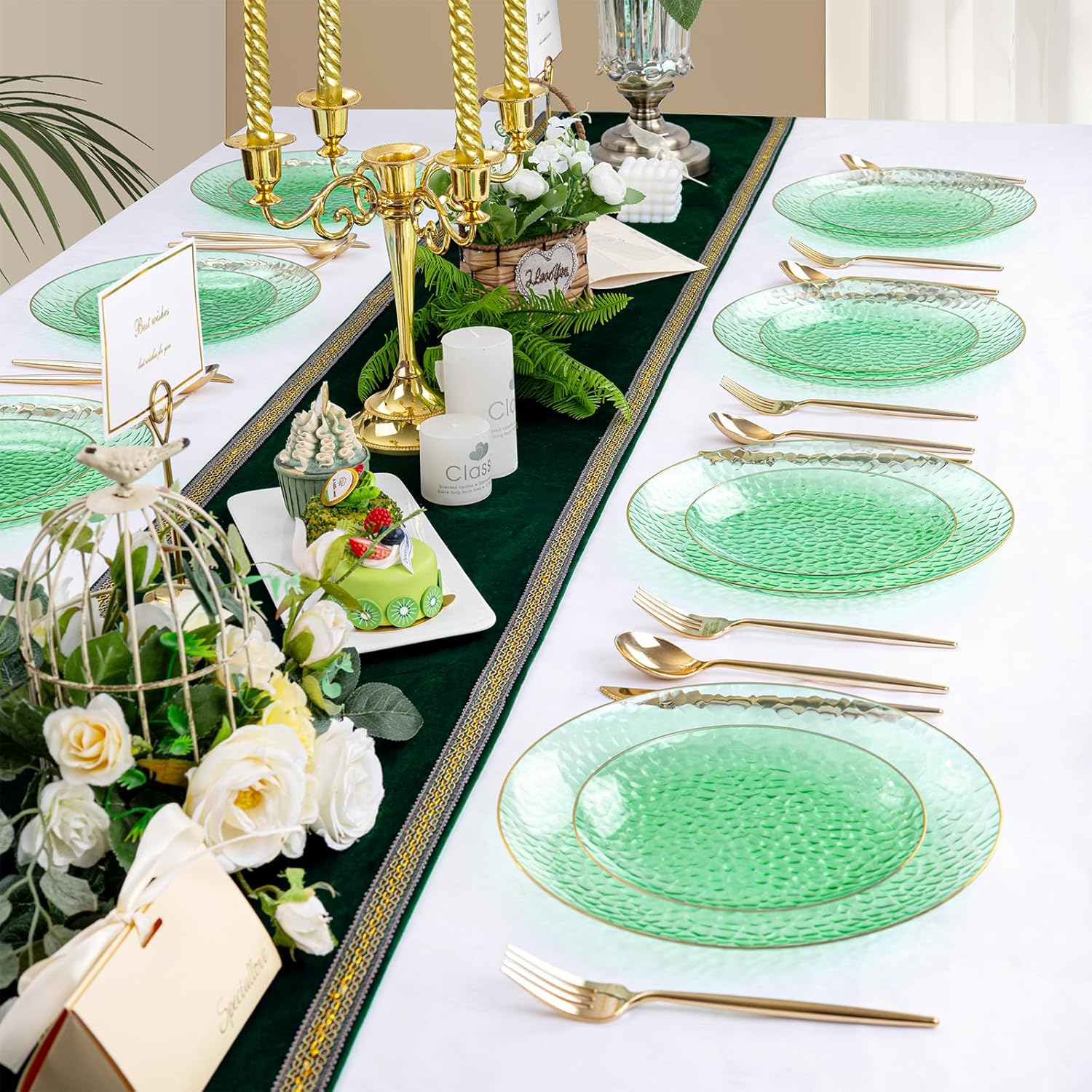 - Elegant Design: Elevate your dining experience with our 10-inch clear pink plastic plates featuring a stunning gold rim. The hammered texture adds a touch of sophistication, making these green plastic plates the perfect choice for any occasion.
