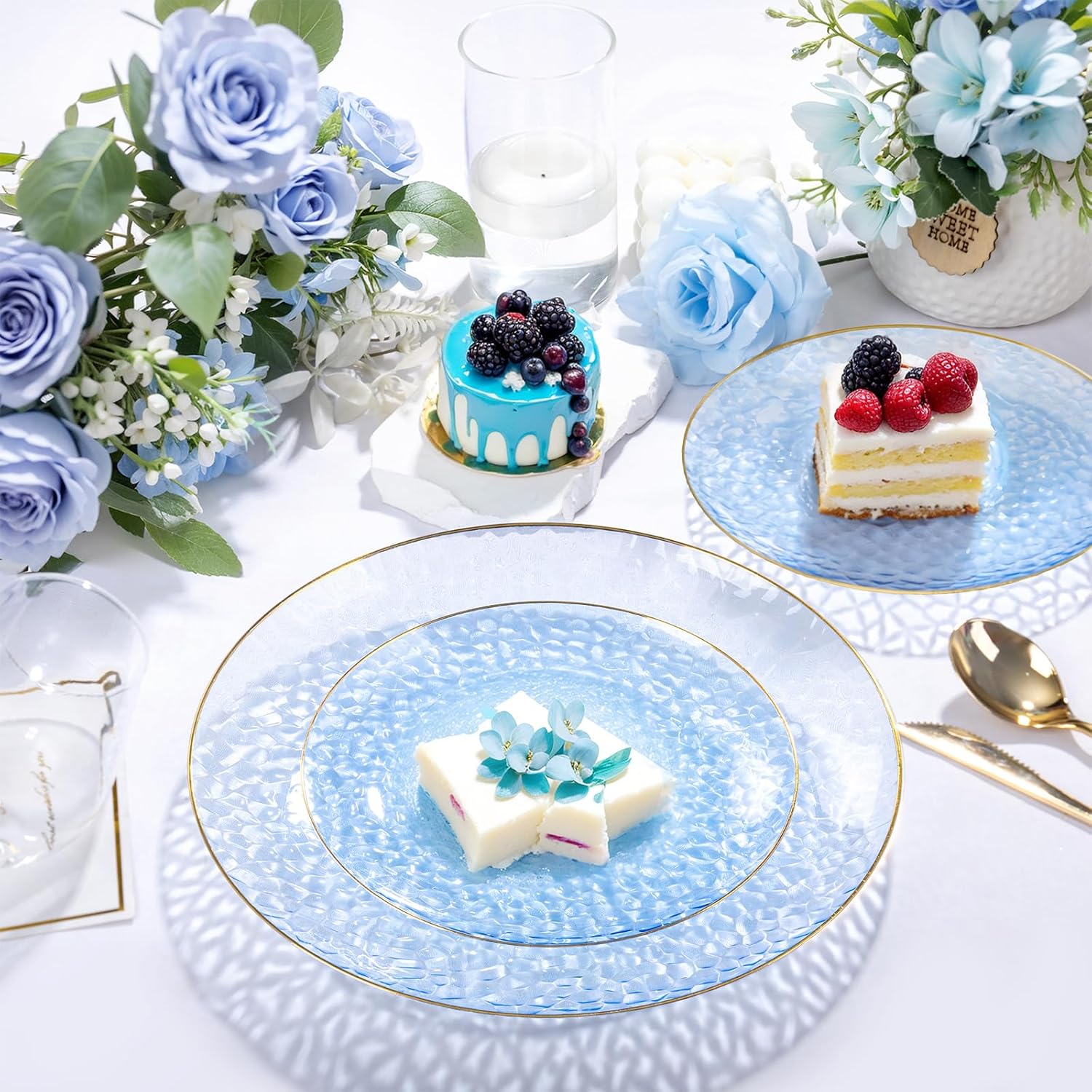 - Hammer Pattern Unique Design:Elevate your dining experience with our 10-inch blue party plates, featuring a stunning hammered design that adds a glass-like elegance to any occasion.