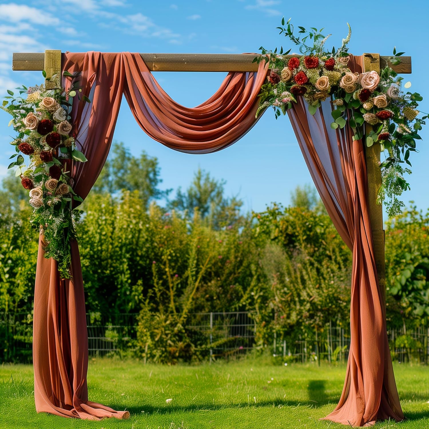 Wedding Arch Draping Fabric 4 Panels 28.7" x 20FT Terracotta Sheer Chiffon Backdrop Drapes for Wedding Ceremony Birthday Party Bridal Shower Outdoor Decoration