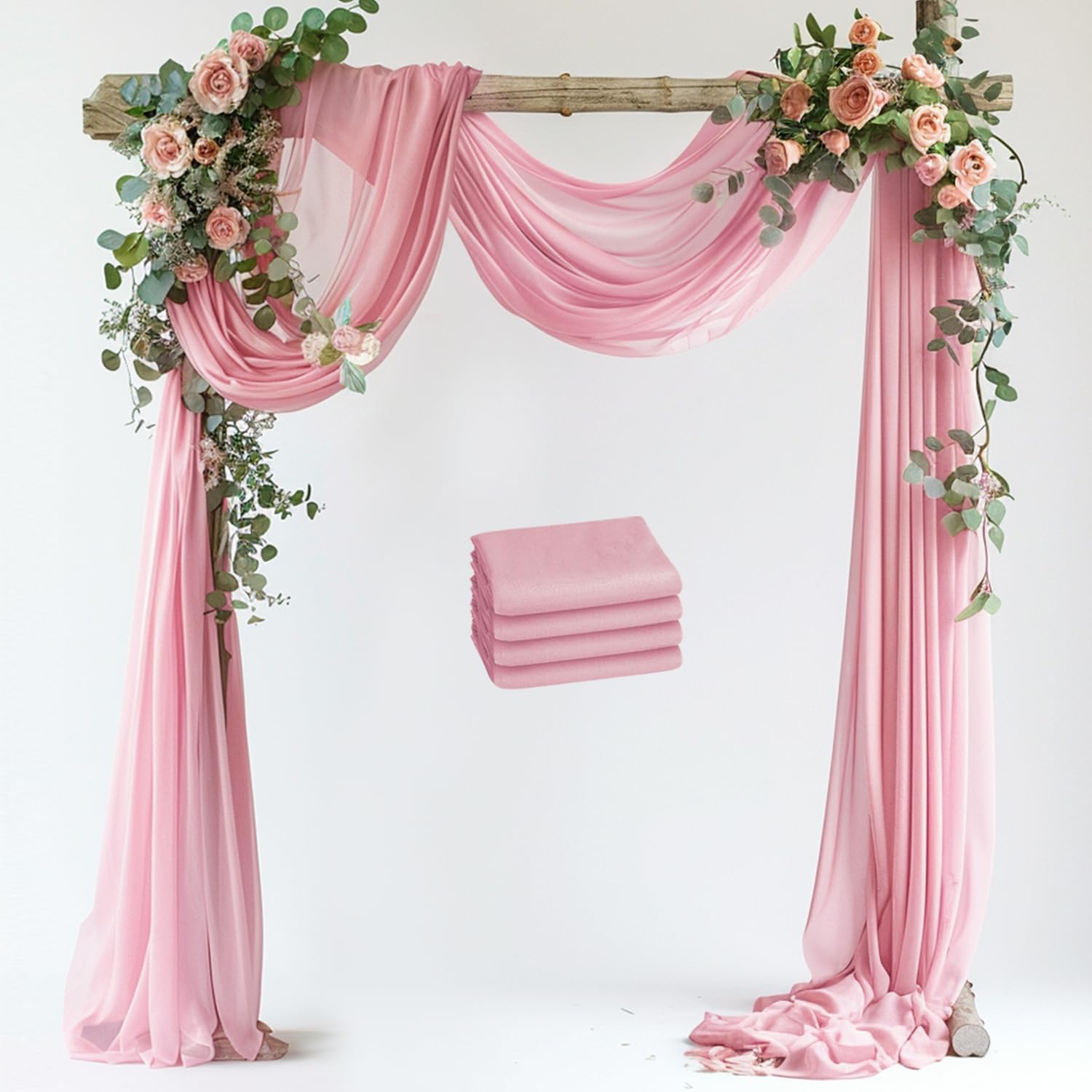 Wedding Arch Draping Fabric 4 Panels 28.7" x 20FT Blush Pink Sheer Chiffon Backdrop Drapes for Wedding Ceremony Birthday Party Bridal Shower Outdoor Decoration