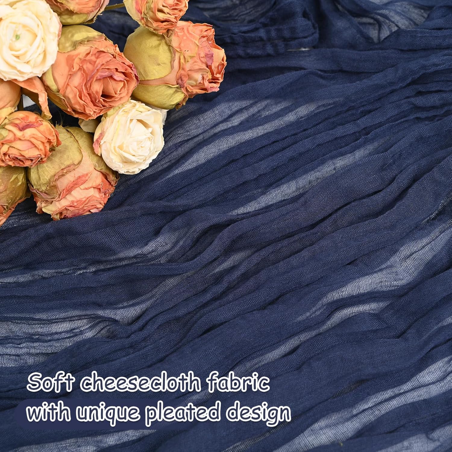 - 【PACKAGE INCLUDES】:You will receive 12 pieces Navy blue cheesecloth table runner.The size of each Navy blue table runner is about 20 x 120 inches/10ft.Which is enough to decorate most tables and suitable for wedding party birthday bridal baby shower.This gauze table runner will bring a romantic atmosphere for your any event.