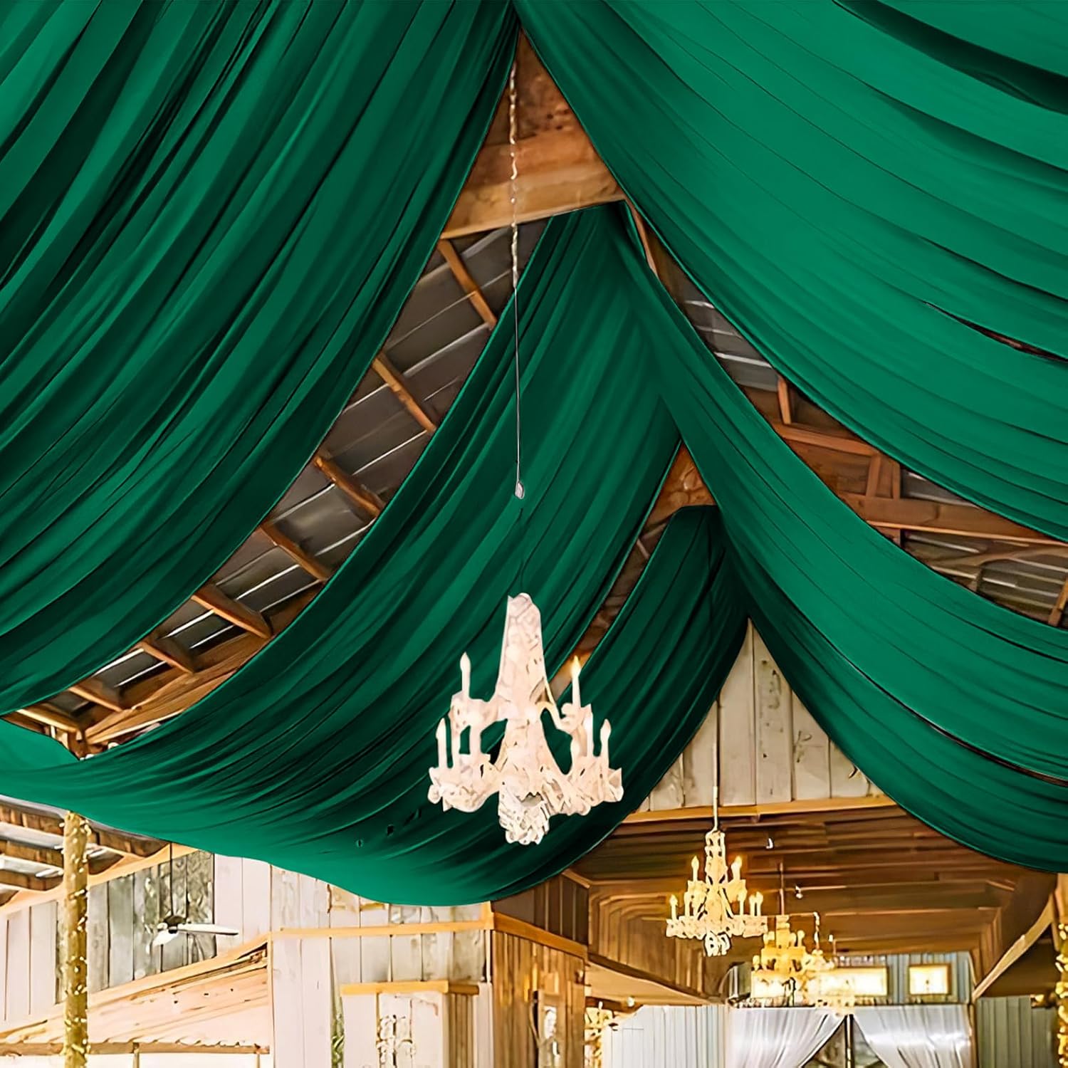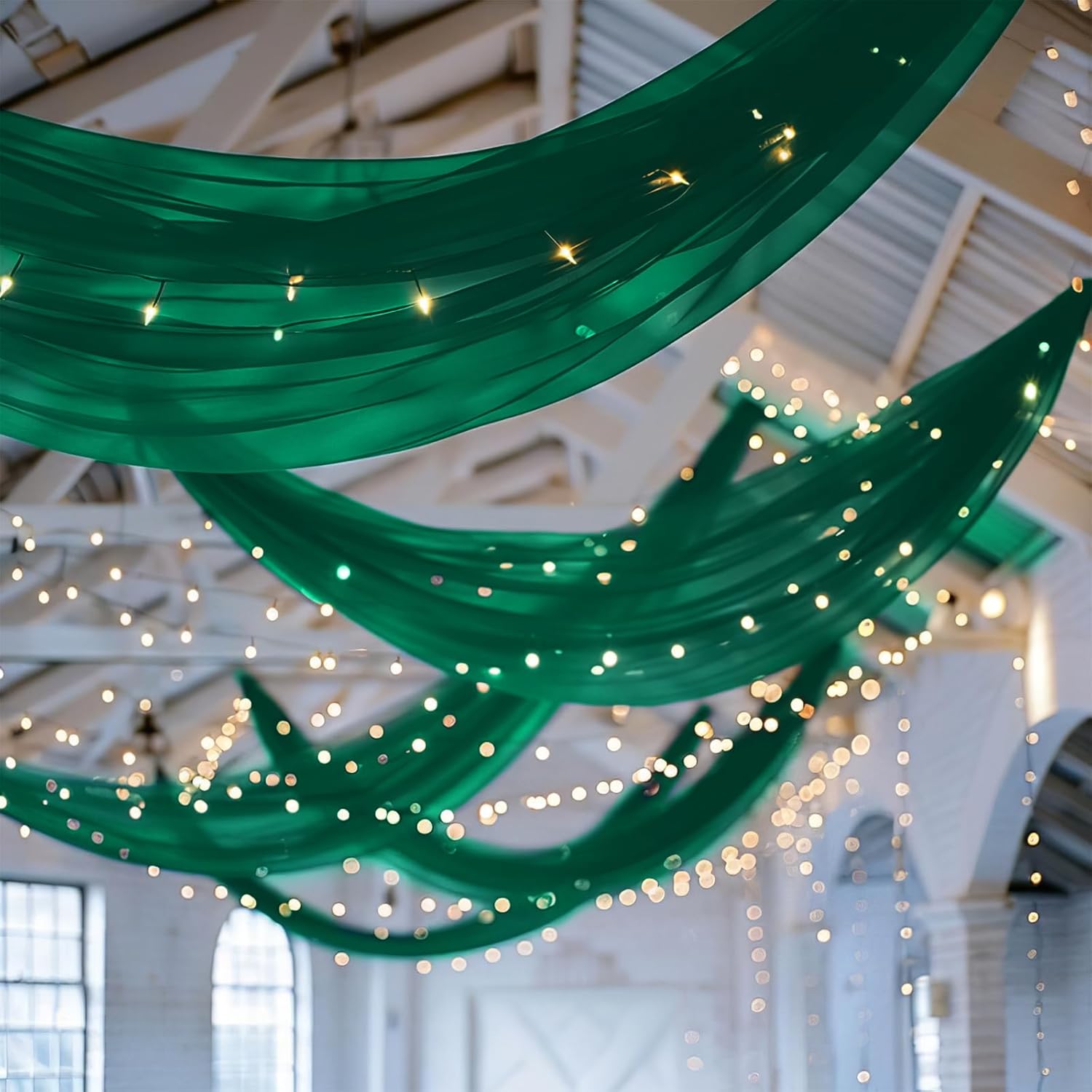 - 【Emerald Green Ceiling Curtain Easy to Install】There is a 4 inches pocket for rod or pole entry at the top and bottom of each panel creating beautiful draping. Entry at the top and bottom of each panel creating beautiful and natural draping. Sheer arch draping fabric are good choice to decorate your party and event. Different hanging methods will bring you various visual effects.