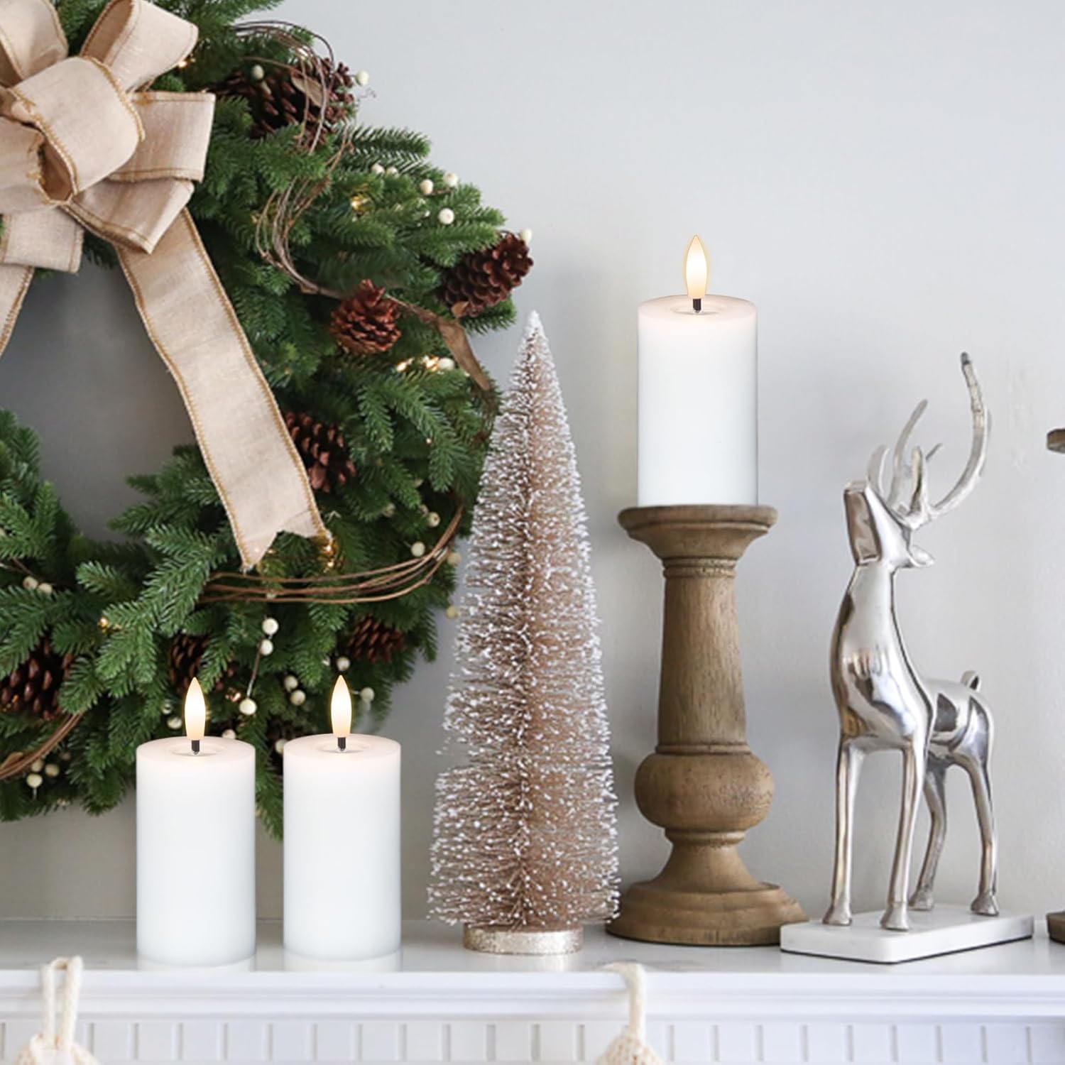 - HOME TABLE CENTERPIECES DECOR: Pillar flamelss candles, which can be placed on fireplaces, dining tables, porches, stairs, desk as decorations, are romantic decorations for birthdays, weddings, parties, dinners, weddings, fall, winter, Halloween, Christmas, let the tealights flamless candle light up every corner of your home