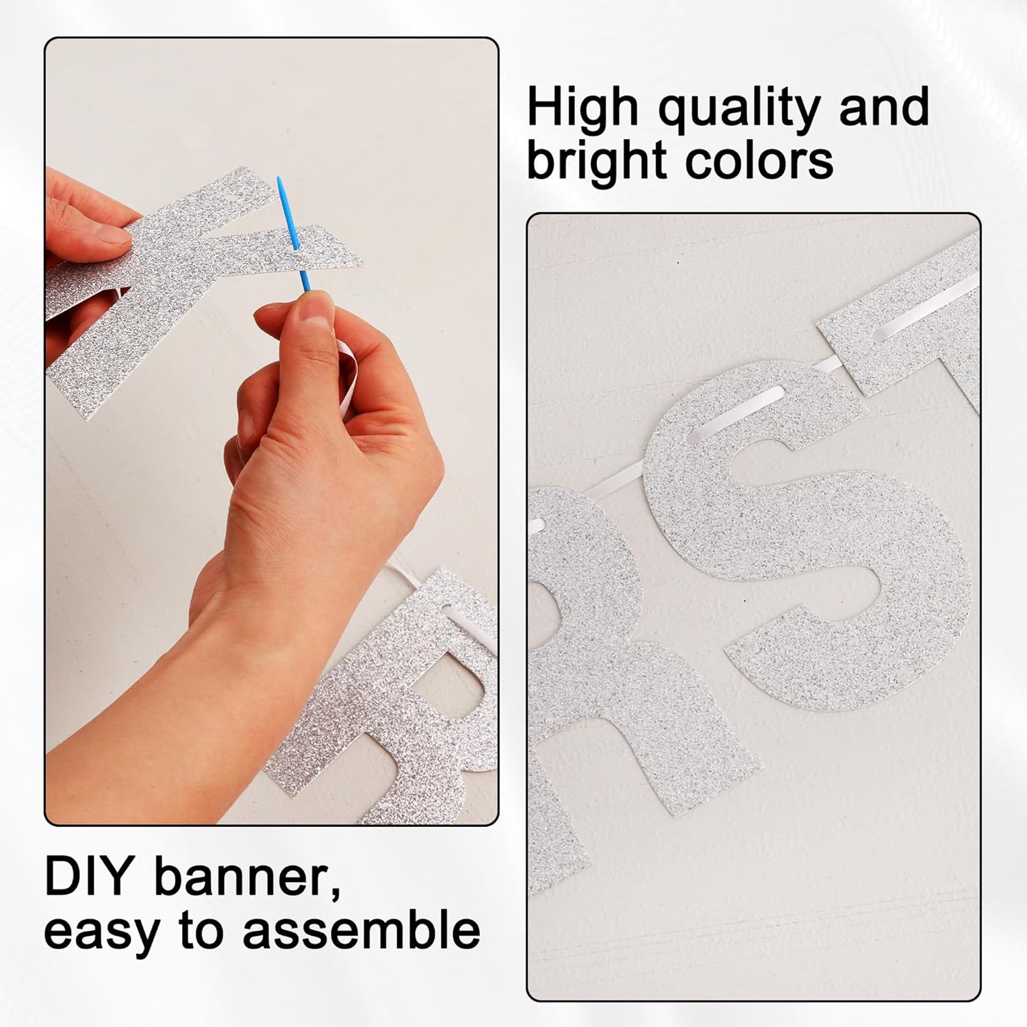 - QUALITY GUARANTEED: We are made of high quality paper with glittery, bright colors that sparkle in the light.Letters are durable and not easily moved. It's perfect for your party decorations on this special day