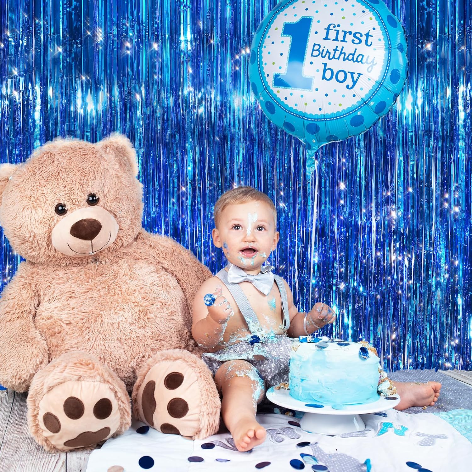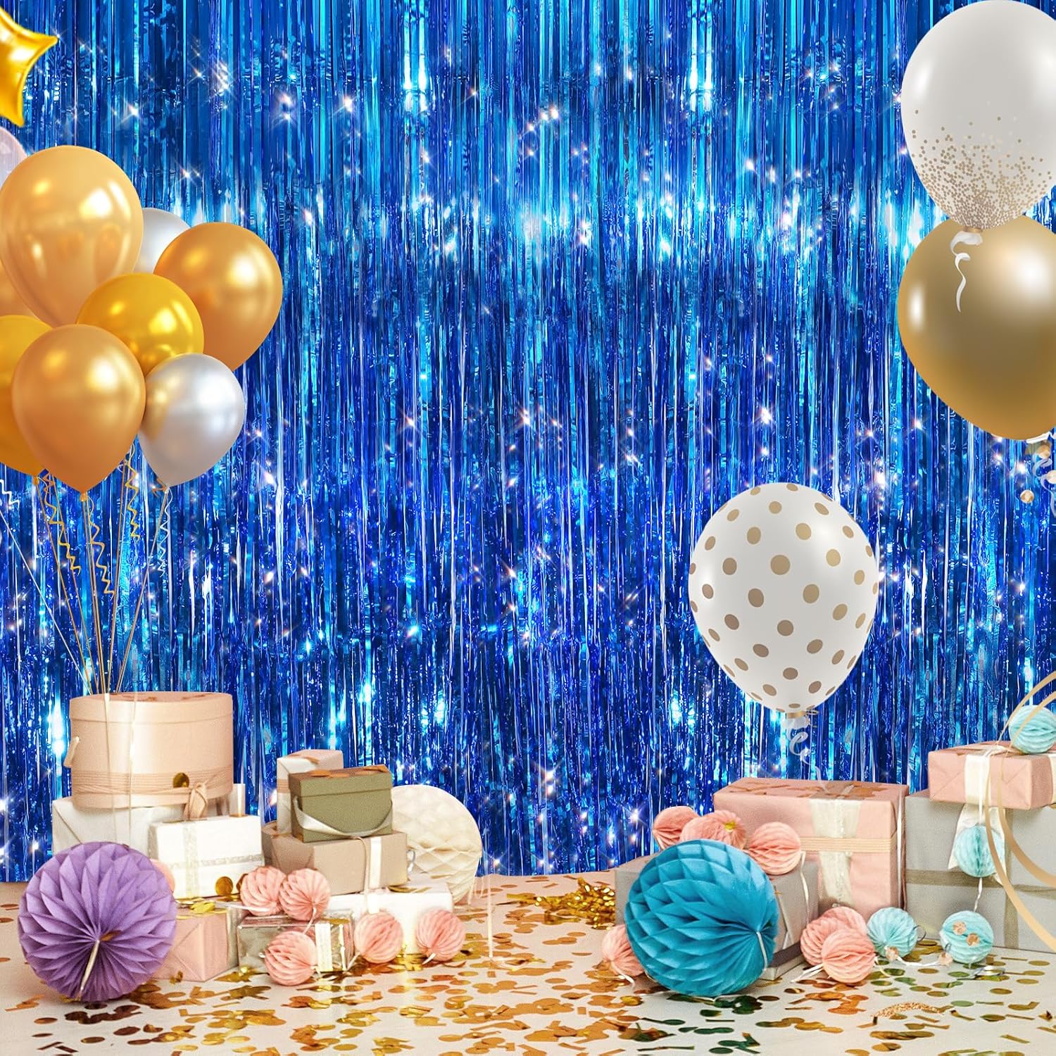 - Foil Fringe Backdrop: Includes 2 packs shiny Blue foil fringe curtains, enough quantity for your party decoration. Each pack curtains size is 3.3 ft x 6.58 ft, enough length for decorate your party. Perfect accessories for decorating doors and walls. for creating a stunning backdrop for any occasion. shimmer tinsel backdrop curtain, you can make a beautiful entrance door curtain or a photo booth backdrop for your guests. They are perfect for christmas party.