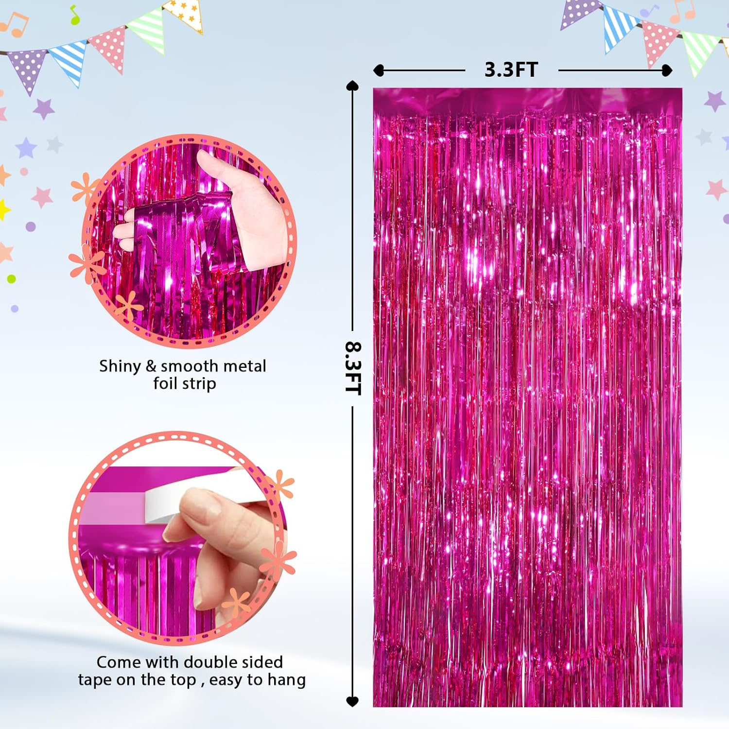 - Foil Fringe Backdrop: Includes 2 packs shiny Pink foil fringe curtains, enough quantity for your party decoration. Each pack curtains size is 3.3 ft x 6.58 ft, enough length for decorate your party. Perfect accessories for decorating doors and walls. for creating a stunning backdrop for any occasion. shimmer tinsel backdrop curtain, you can make a beautiful entrance door curtain or a photo booth backdrop for your guests. They are perfect for christmas party.