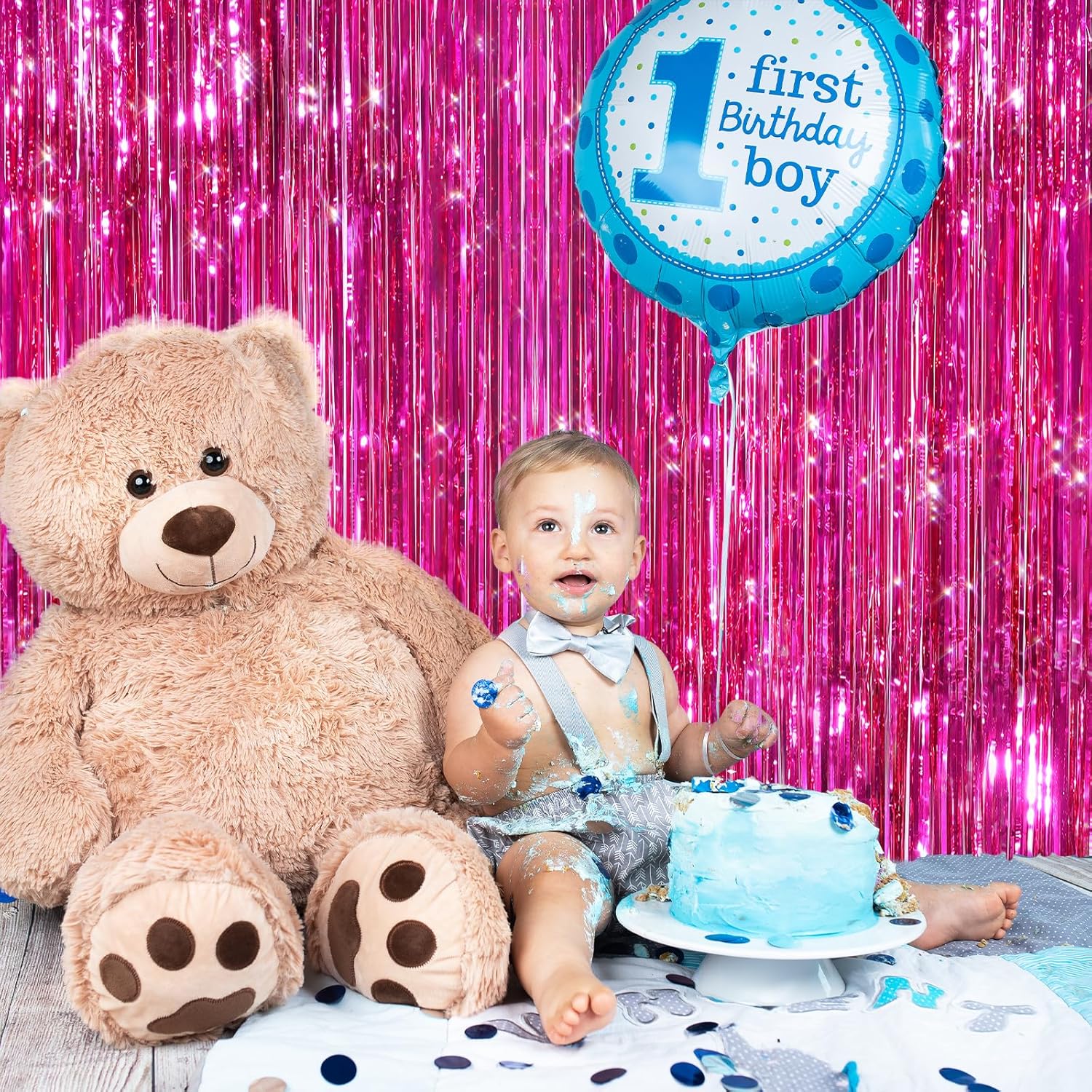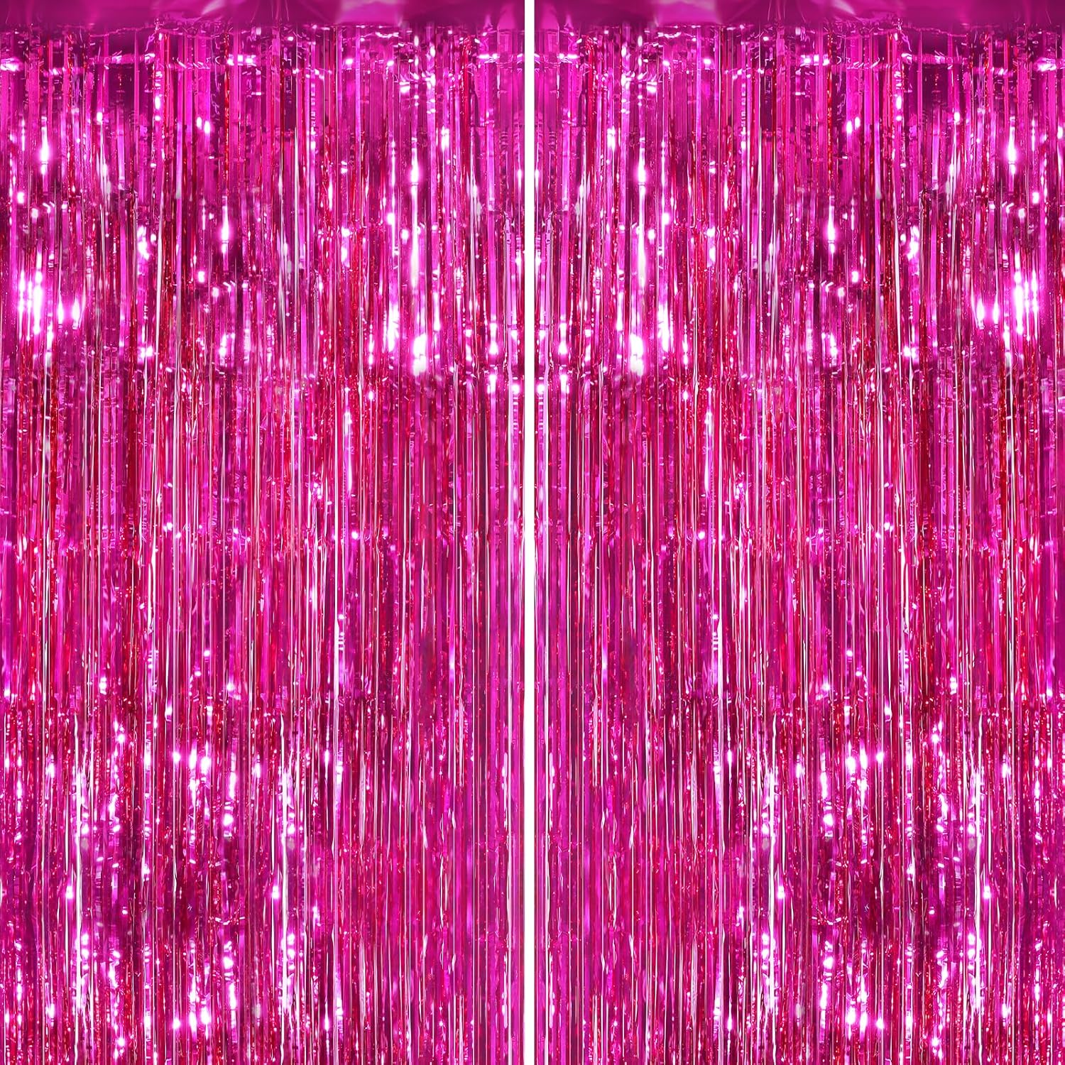 2Pack Hot Pink Metallic Tinsel Foil Fringe Curtains Backdrop for Pink Party Birthday Wedding Bachelorette Baby Shower Holiday Party Decorations Photo Booth Props, Bachelorette Christmas Party Decors