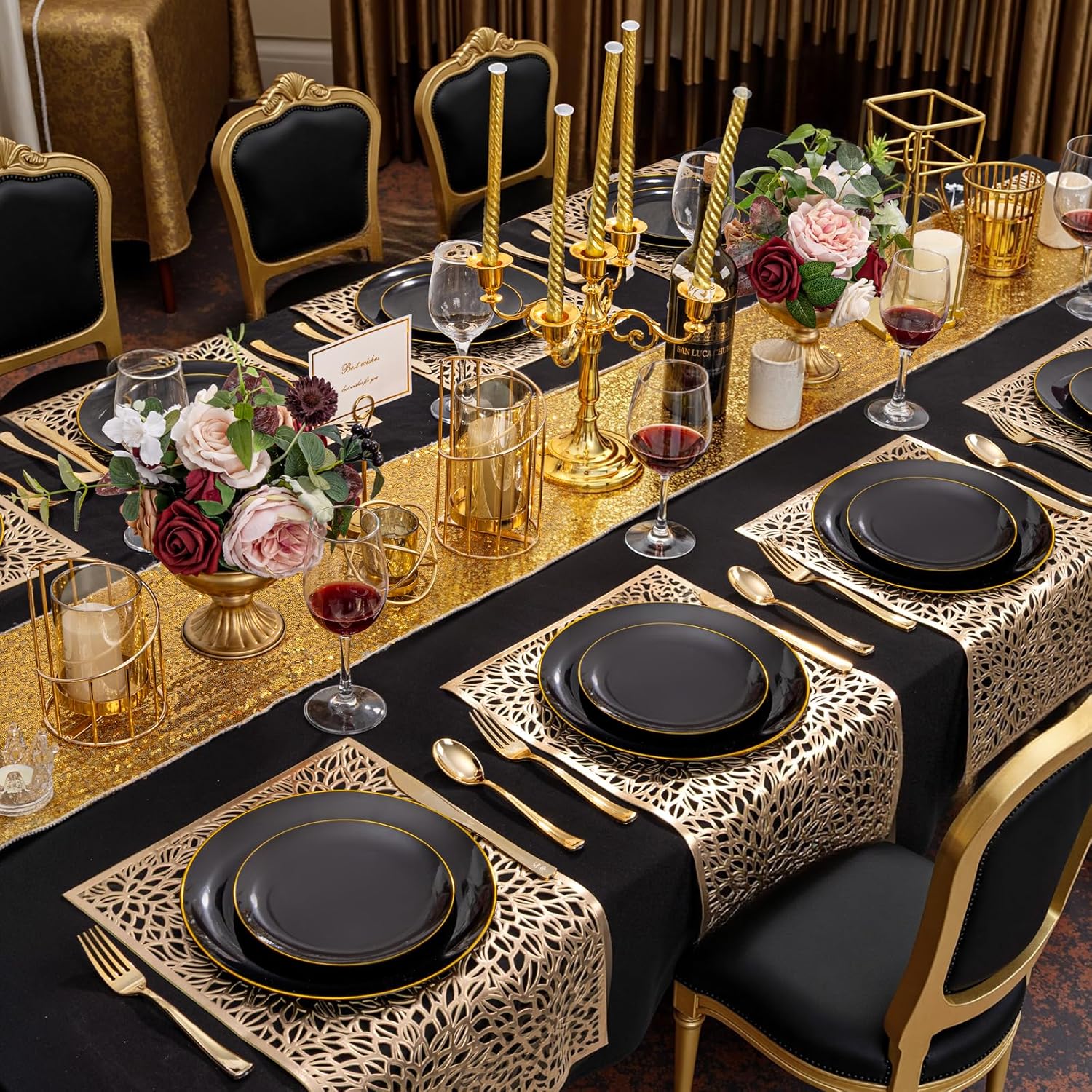 - Elegant Design - These black and gold party plates with elegant gold trim. The curvature of the plates can effectively prevent food from spilling. This gold design will leave a good memory for your guests