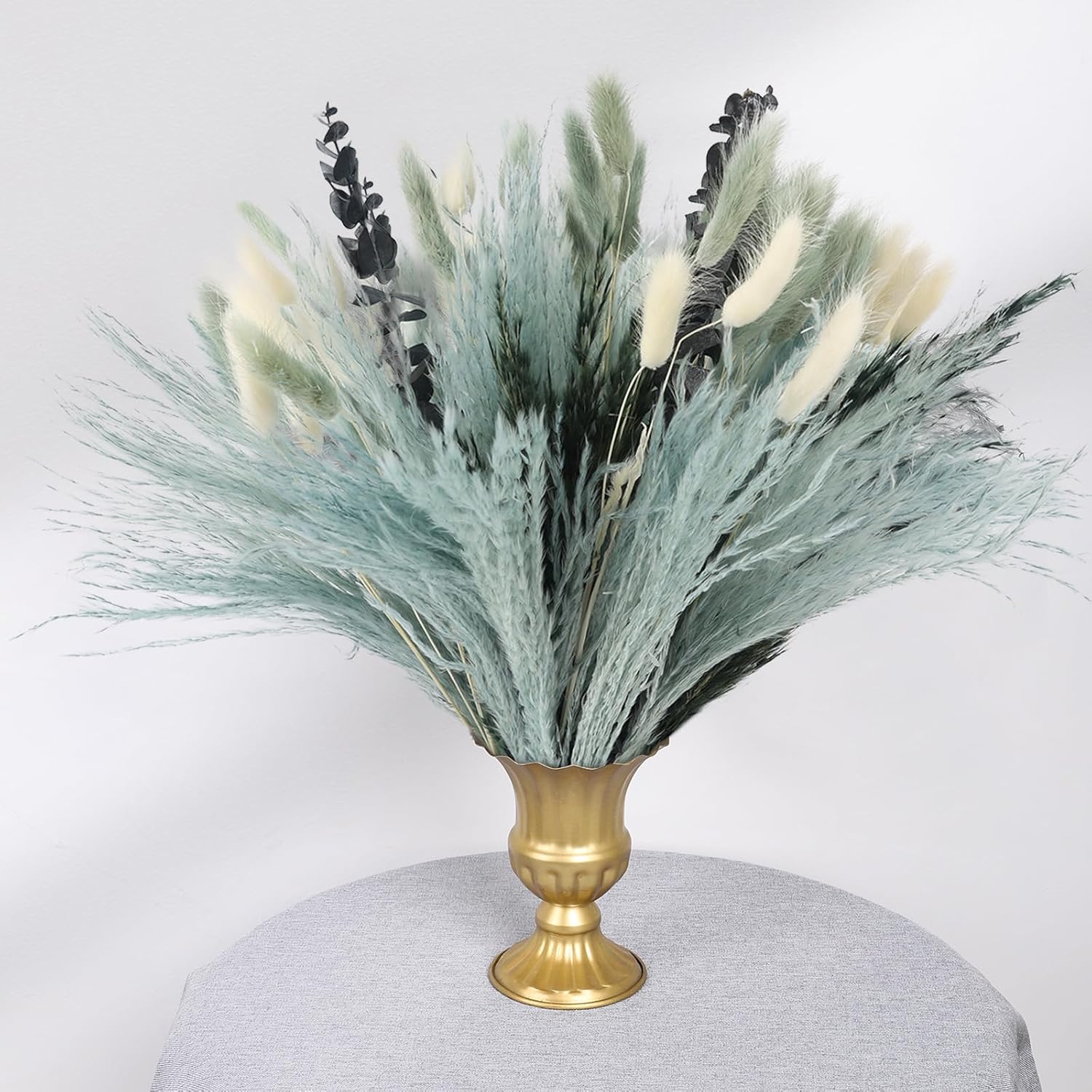 N&T NETING 100Pcs Grey Pampas Grass Decor Natural Dried - Gray Pampas Grass Bunny Tails Eucalyptus Leaves Gray Flowers for Centerpieces Rustic Living Room Home Wedding Boho Modern Decor(17.5 Inch)