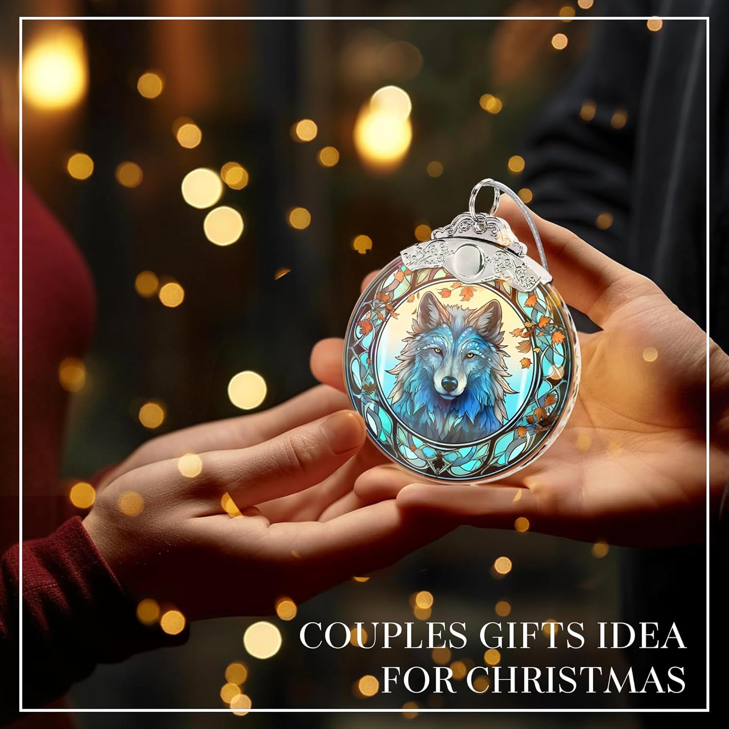 2025 Ornament Stained Glass Effect, Big 4 Inch Acrylic Hanging Art, Tree Ornaments, Holiday Decoration, Car Interior Accent, 2025 Christmas Ornament (Mystic Wolf)