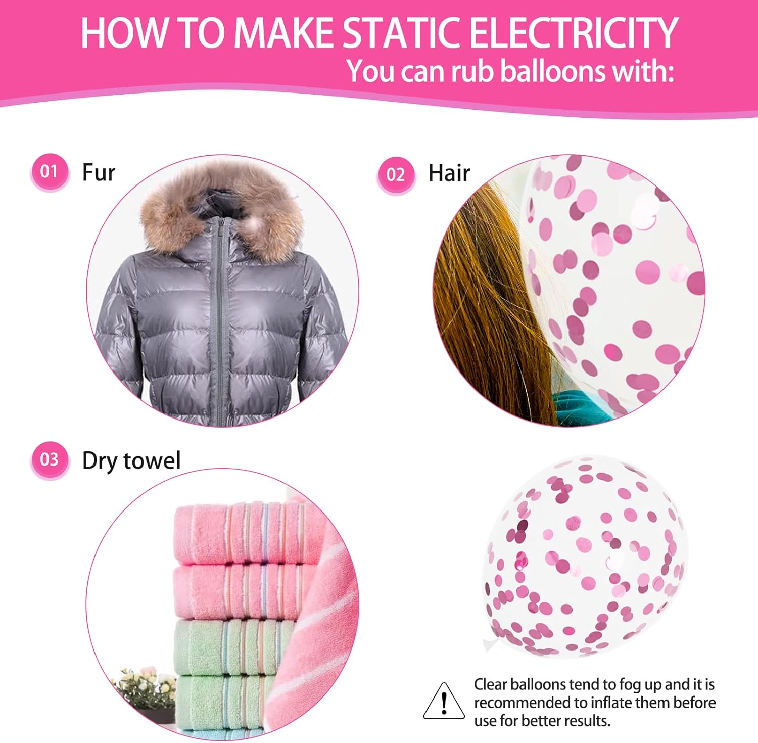 - 【Easy To Use】Pink latex balloons and confetti balloons can be filled with air, helium and even water. Please do not over inflate the balloons to avoid bursting. If you have any questions about our balloon set, please contact us at once .