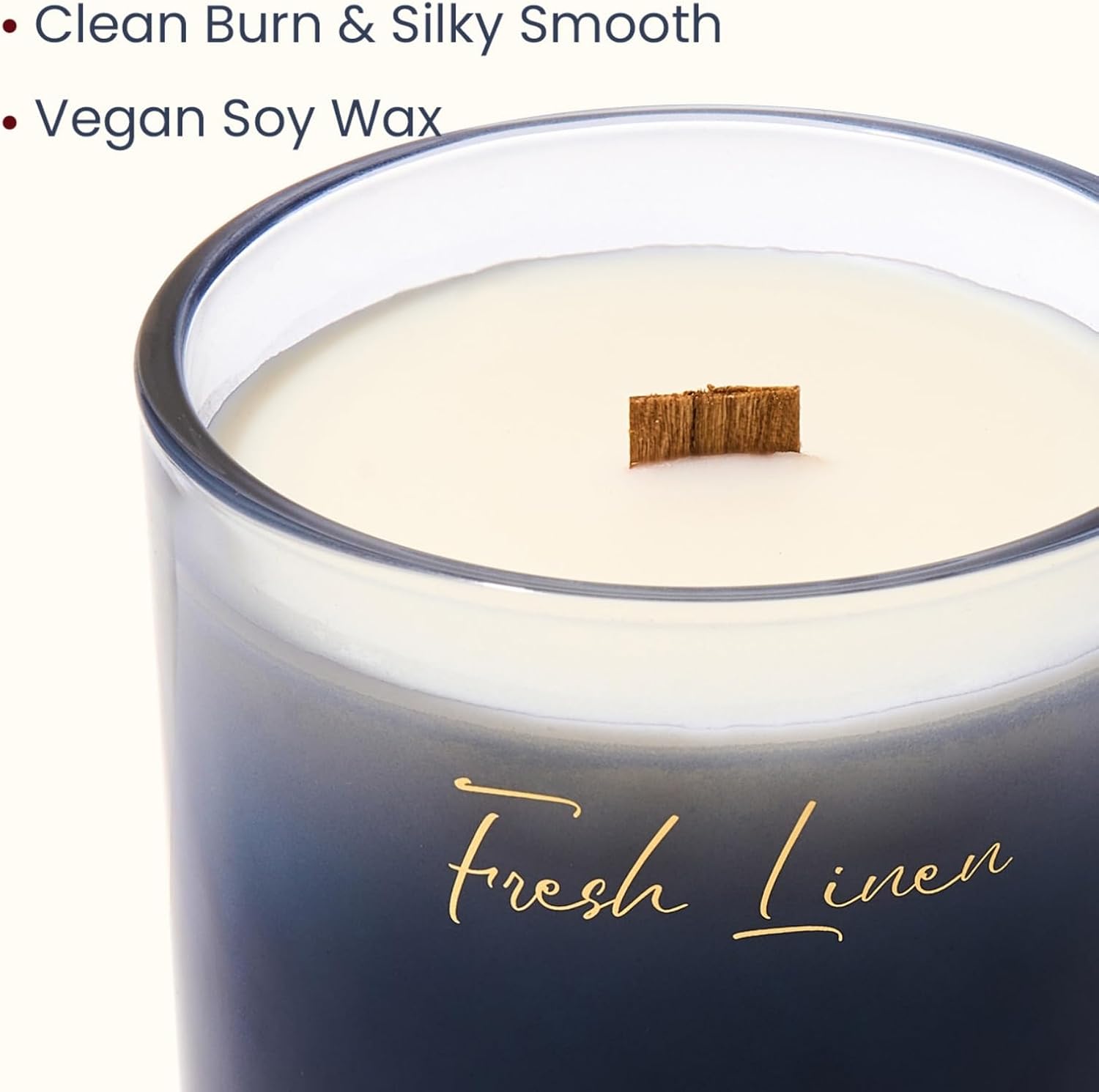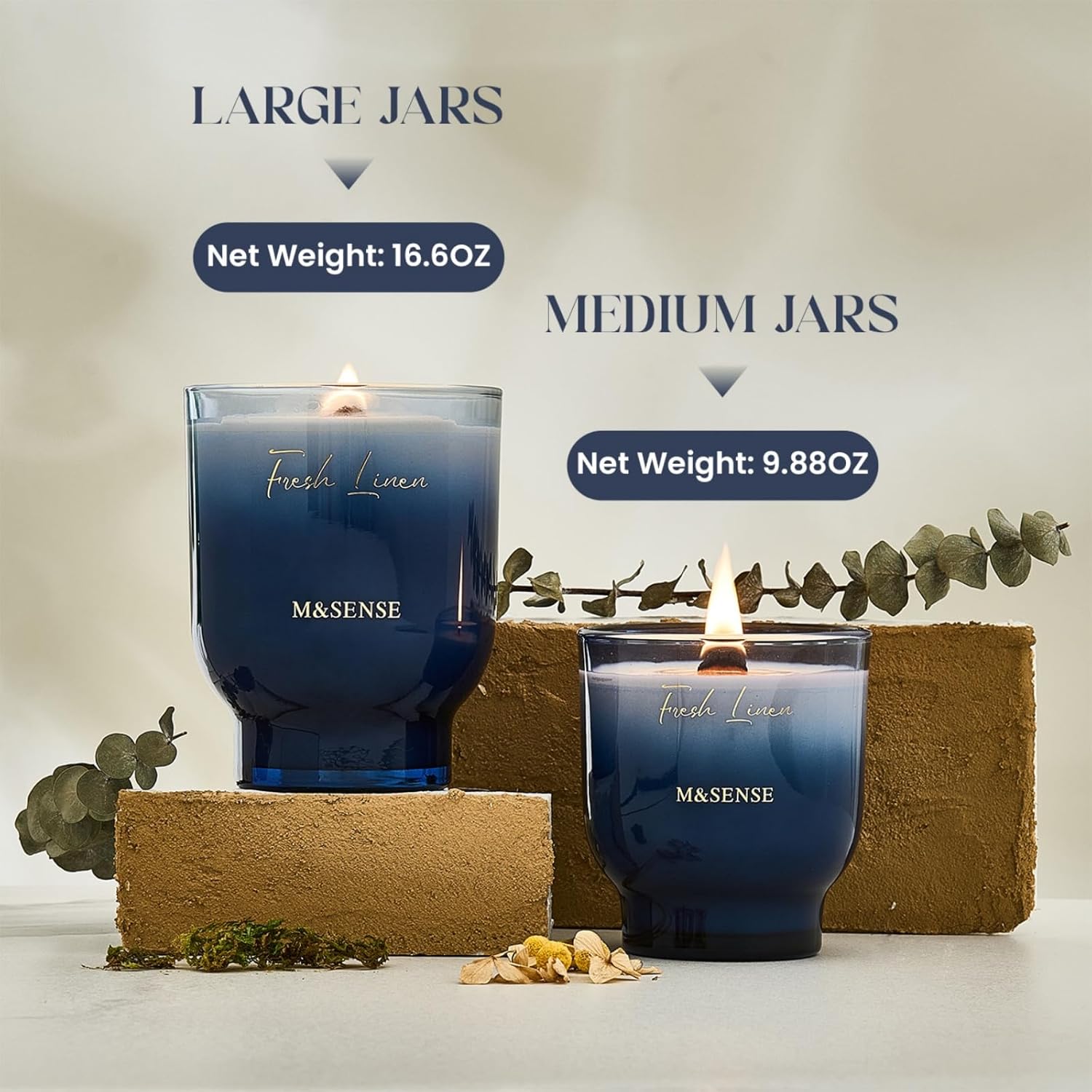 M&SENSE 16.6oz Natural Soy Large Jar Candle with Wooden Wick | Fresh Linen Scent | 95-Hour Burn & Long-Lasting Burn | Housewarming Gift for Men and Women