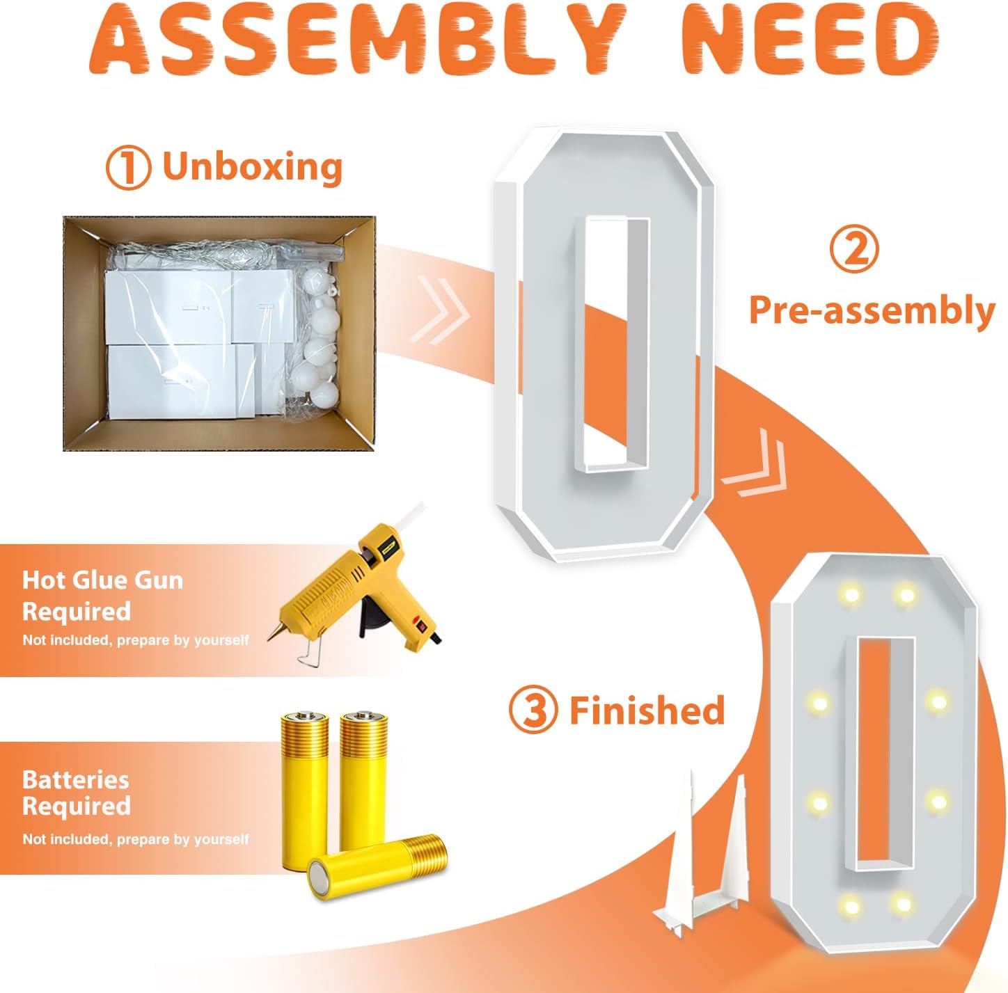 - EASY TO ASSEMBLE: The package includes pre-cut foam boards, light strings and instructions. Each foam board has slots and is numbered, so you can match them according to the 2 same numbers. All you need to do is to prepare a hot glue gun and 3 AA batteries, follow the step-by-step instructions or online video for a hassle-free assembly. Decorate the party with your kids or friends and enjoy the DIY fun. (Note: Glue gun, glue and batteries are not included)