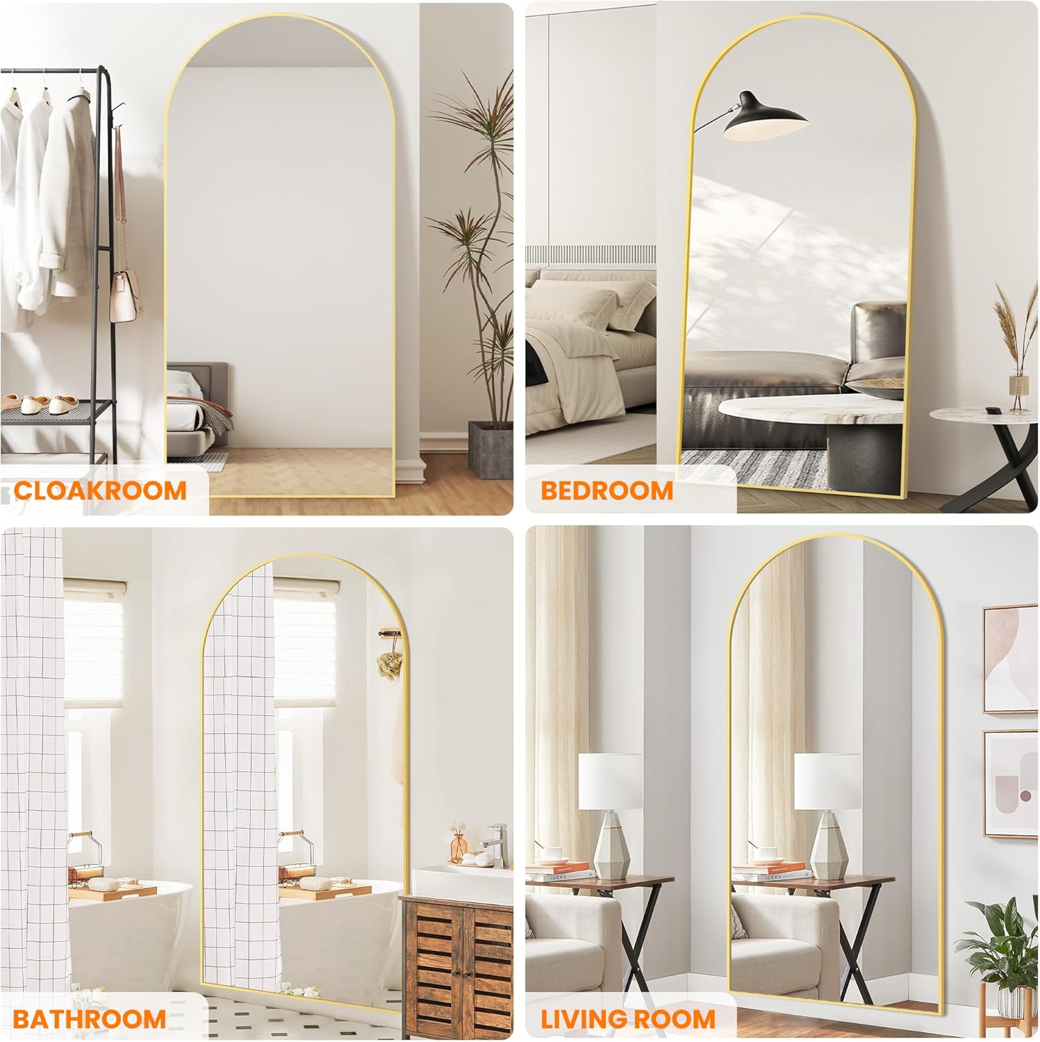 - WIDELY APPLICATION: This Arched Wall Mirror can lean against the wall or free stand anywhere with the hiden stand. It can also be wall-mounted as a decorative mirror in the entrance hall, living room or bedroom.