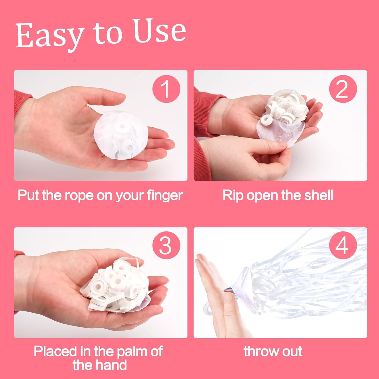 - How to use - Put the looped handle above the ribbons on your finger, then tear the wrapping paper at the bottom and throw them at a forward and upward angle, the more ribbons you throw at the same time the better the result. You can achieve a shocking effect and an instant lift in atmosphere