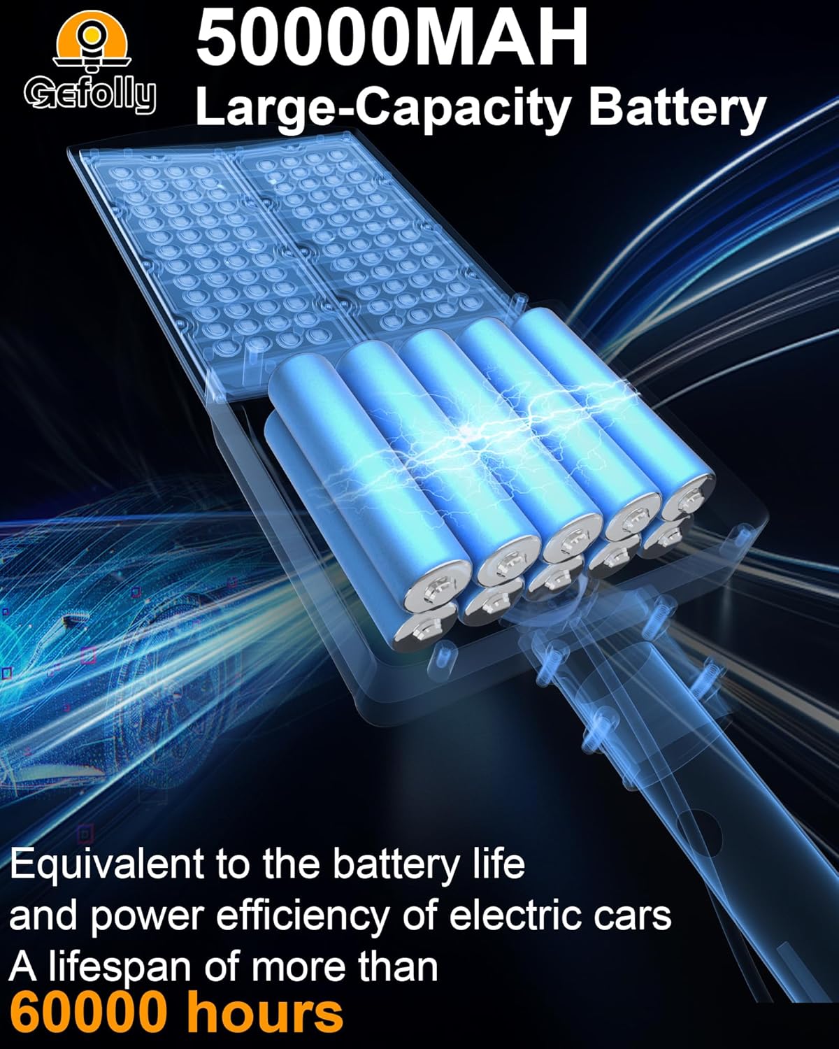 - [Solar Powered & No Electricity Bill] - Gefolly SL-11000W The solar street light is built-in 104pcs 5054 ultra bright LED lamp beads and 50000mAh battery (lifetime up to 60,000 hours). Provides a 6500K, IP67 waterproof rating, and works normally even in bad weather all year round. Solar powered, no electricity bill, auto turns on at dusk and charging during the day, Continuous lighting up to 30 hours (when fully charged). Best for commercial and home lighting. Note: The remote controls that come with the light are available in white and black. The white and black remote controls are shipped randomly.