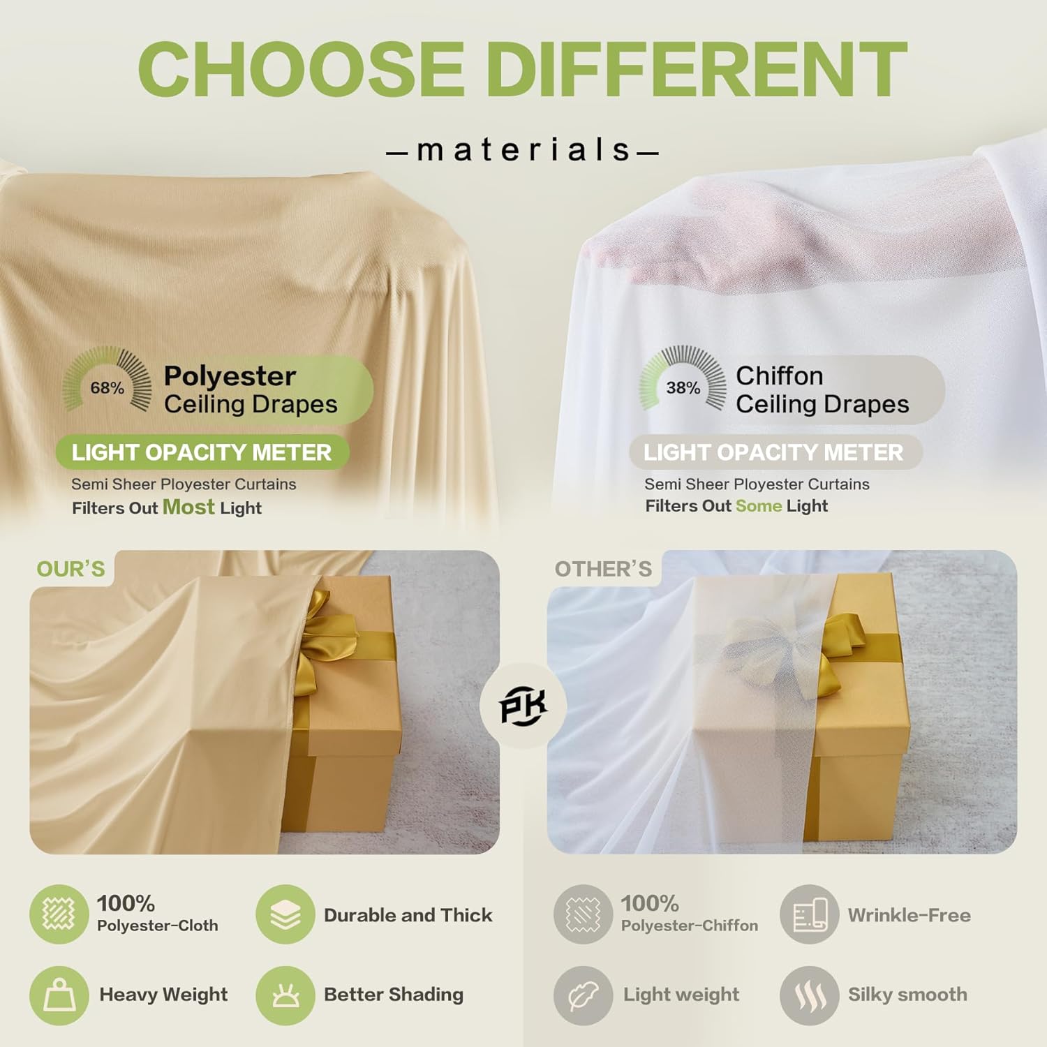 - 15FT Extra Long Backdrop Drapes: 4 Panels 5ftx15ft Beige Backdrop Curtains for Parties. Totally 20FT(Width) x 15FT(Height). cortinas para fiestas decoracion.